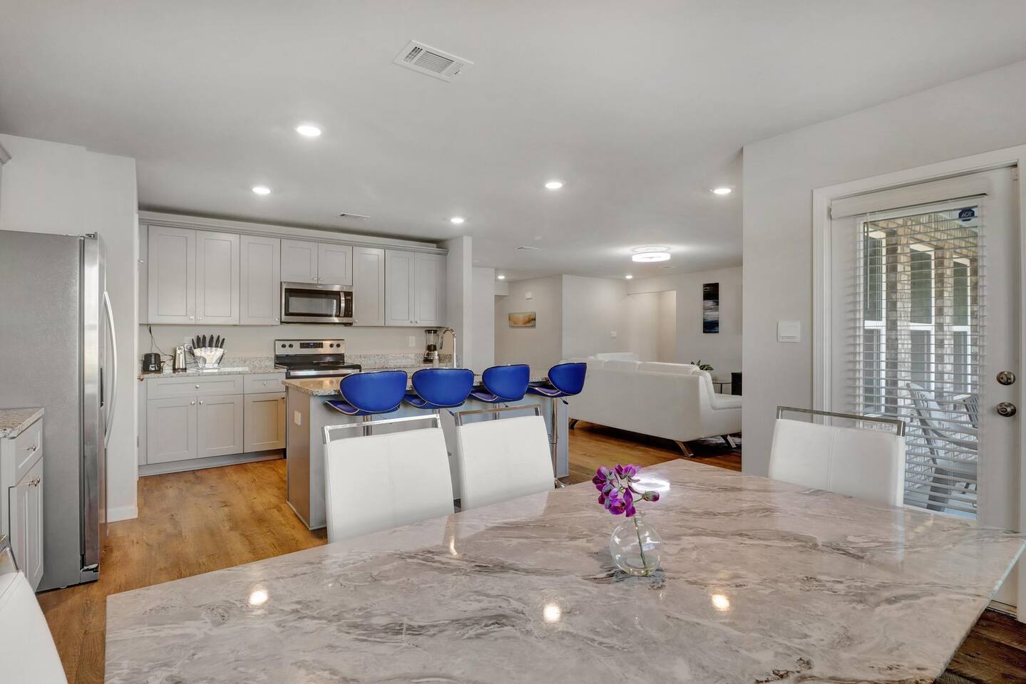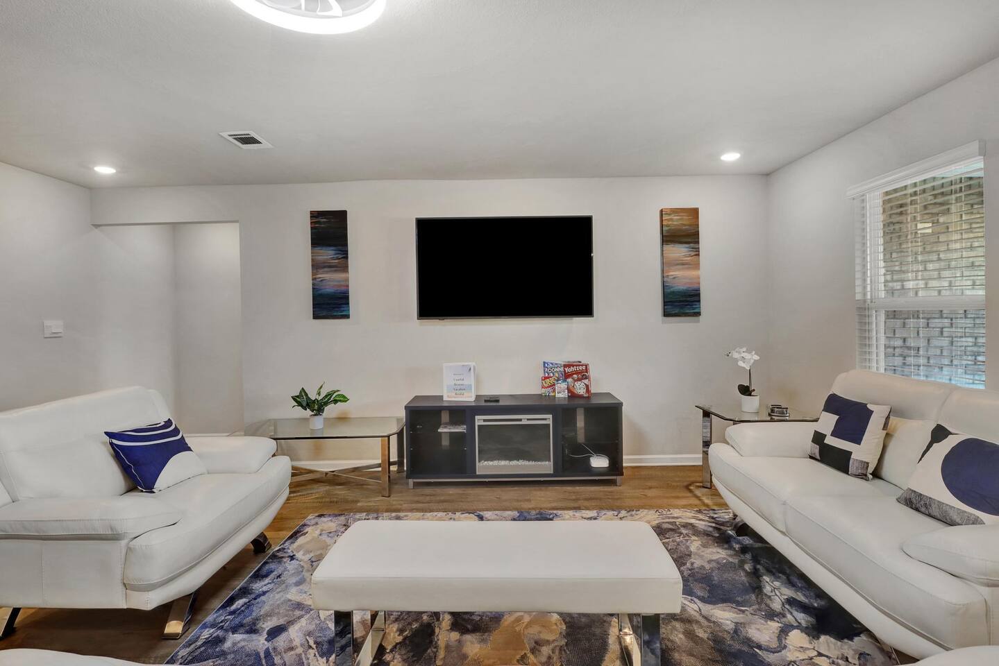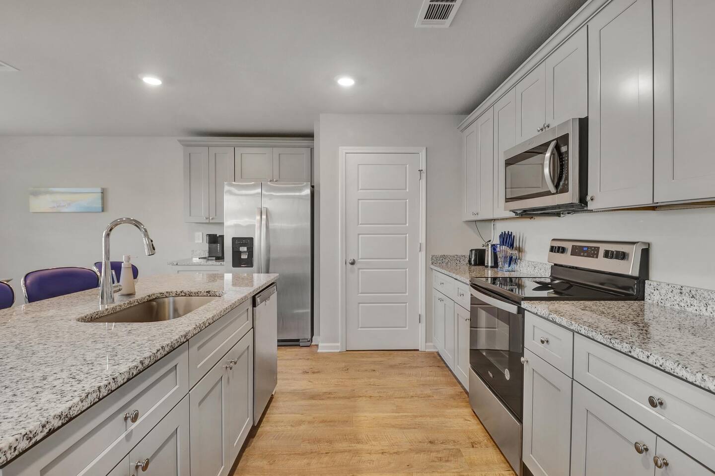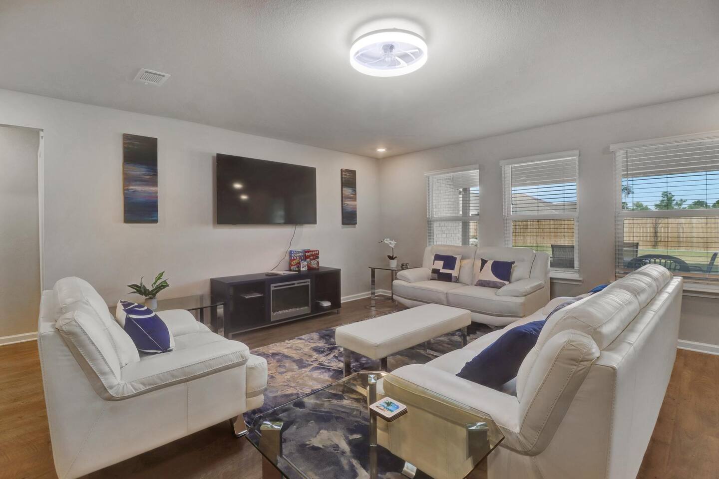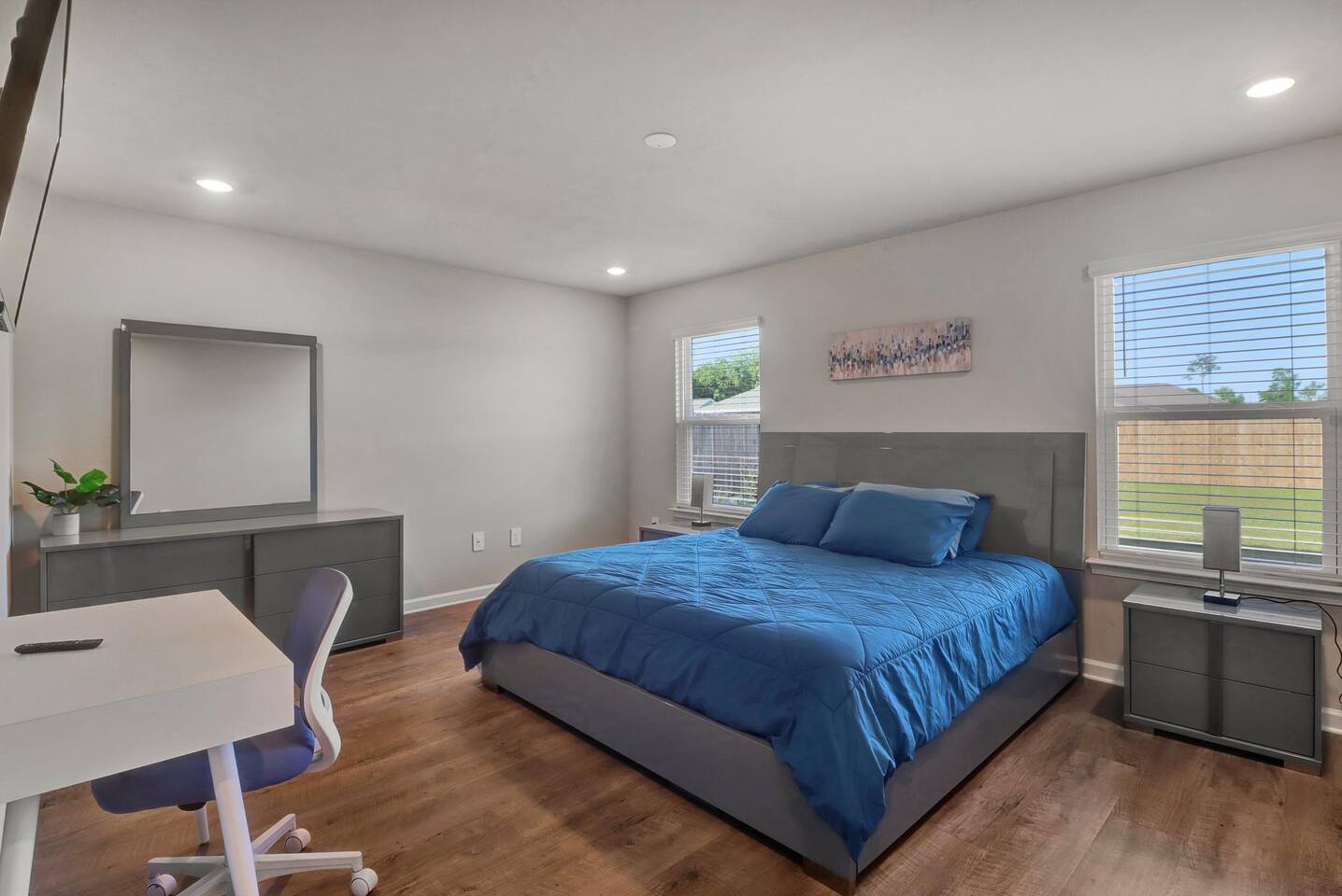 -- THE PROPERTY -- SLEEPING ARRANGMENTS - Bedroom 1: 1 king bed - Bedroom 2: 1 queen bed - Bedroom 3: 2 twin beds - Bedroom 4: 1 twin/full bunk bed KITCHEN - Refrigerator, stove/oven, dishwasher, microwave - Coffee maker, dishware & flatware, toaster, blender - Cooking basics, breakfast bar seating INDOOR LIVING - Smart TV - Dining table - Ceiling fans - Workspaces GENERAL - Free WiFi - Washer & dryer, towels, linens - Central air conditioning/heat - Hangers, hair dryer - Keyless entry ACCESSIBILITY - Step-free access - Single-story home FAQ - 3 exterior security cameras (facing out) PARKING - Garage (2 vehicles), driveway (1 vehicle) -- THE LOCATION -- - 3 miles to Jim Simpson Memorial Fishing Pier - 4 miles to Long Beach Pavilion - 6 miles to Island View Casino Resort - 15 miles to Treasure Bay Casino & Hotel - 27 miles to Davis Bayou Area Gulf Islands National Seashore - 12 miles to Gulfport-Biloxi International Airport -- POLICIES -- - No smoking - No pets allowed - No events, parties, or large gatherings - Must be at least 25 years old to book - Additional fees and taxes may apply - Photo ID may be required upon check-in ADDITIONAL INFORMATION - Your safety matters. This property features 3 exterior security cameras: 1 doorbell device with an exterior security camera facing the front outdoor entry, 1 camera located at the front entrance facing the driveway, and 1 camera located at the back patio door facing the backyard. The cameras are outward facing and do not look into interior spaces. The cameras record video and sound when activated by motion