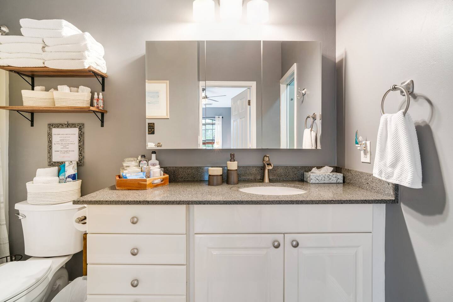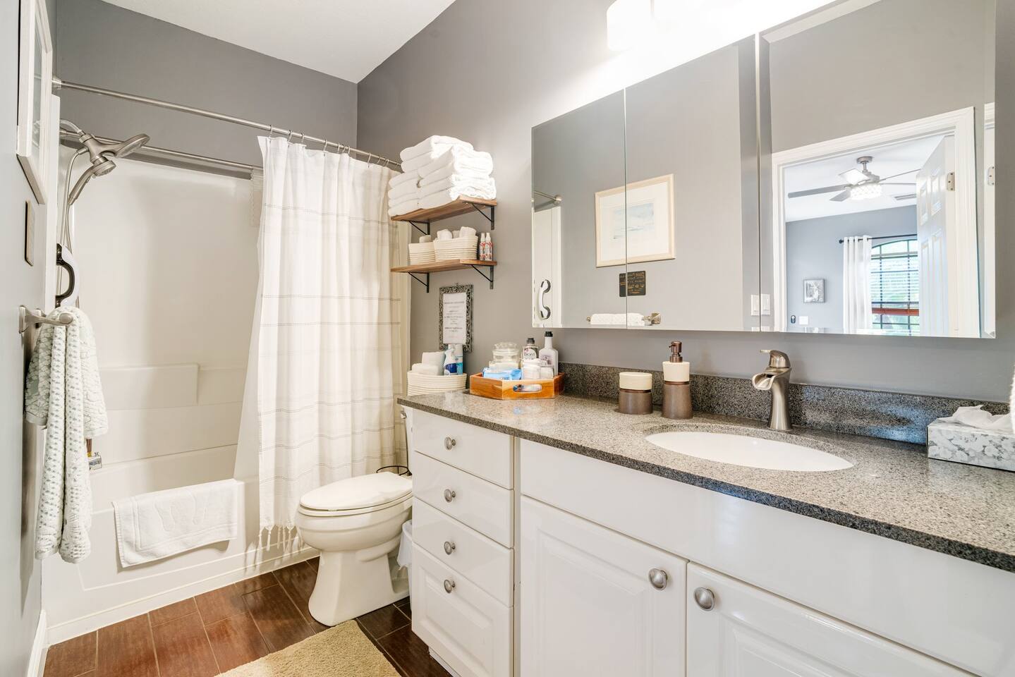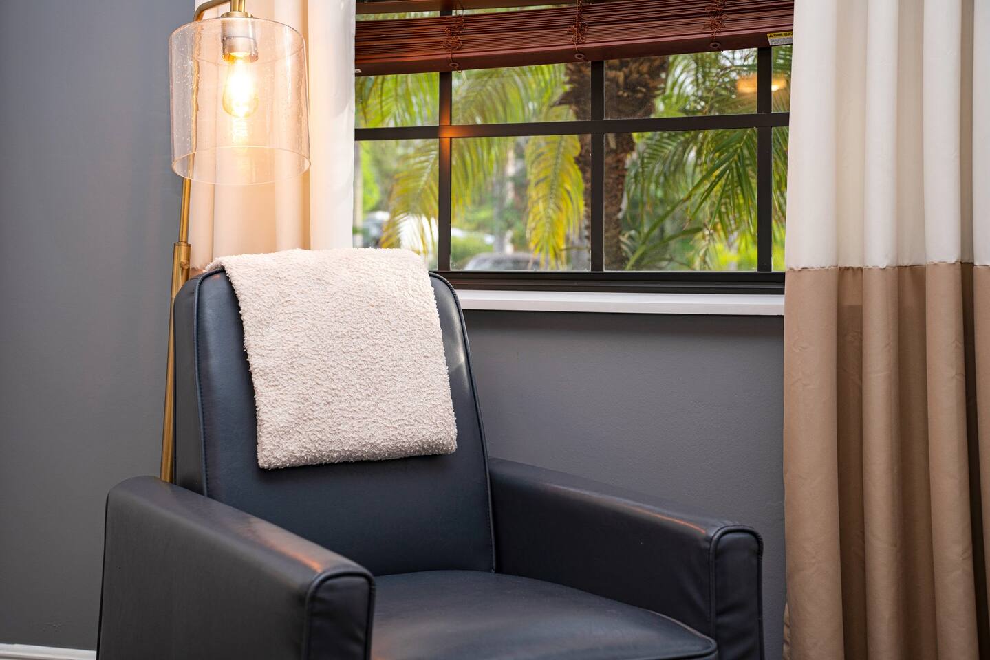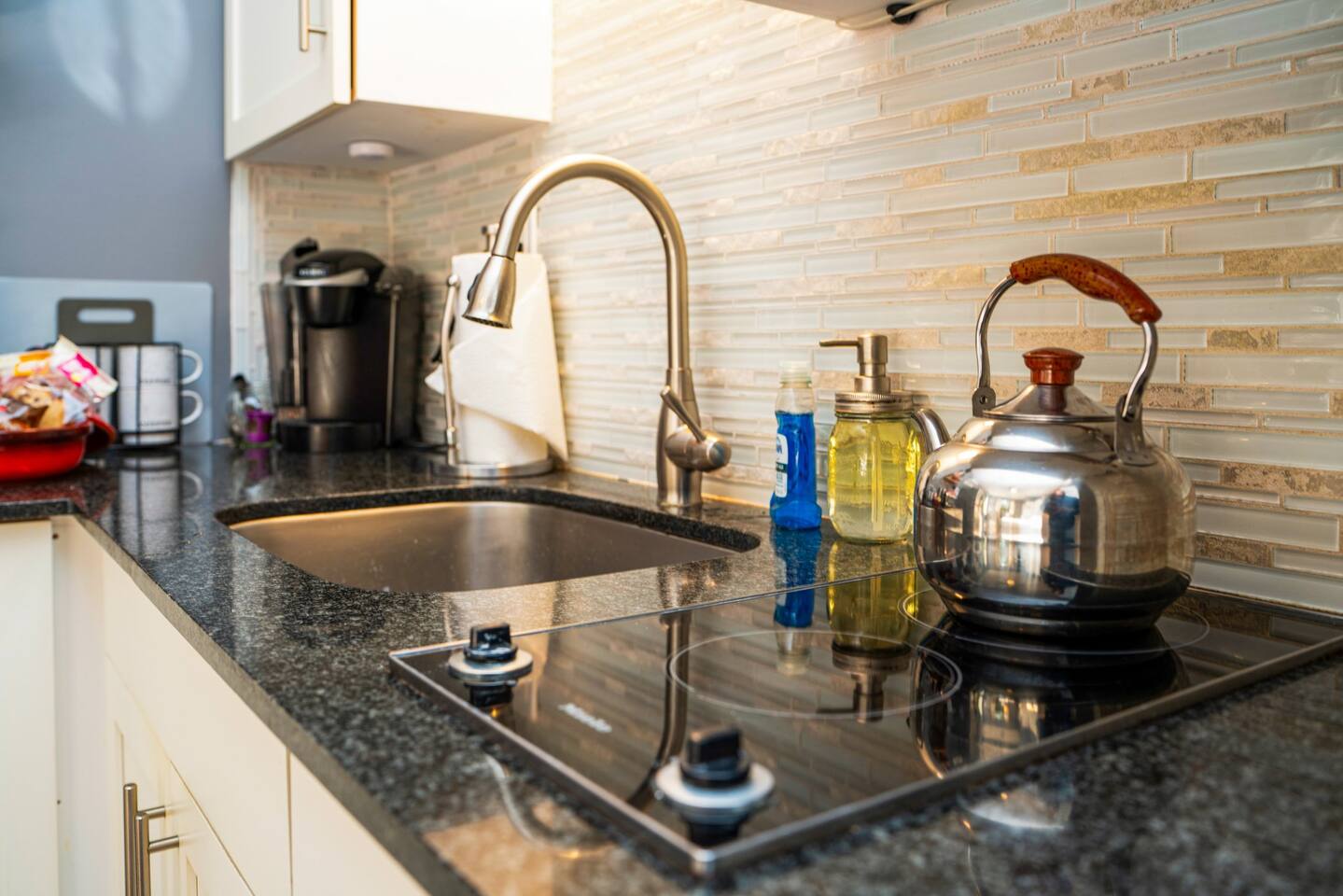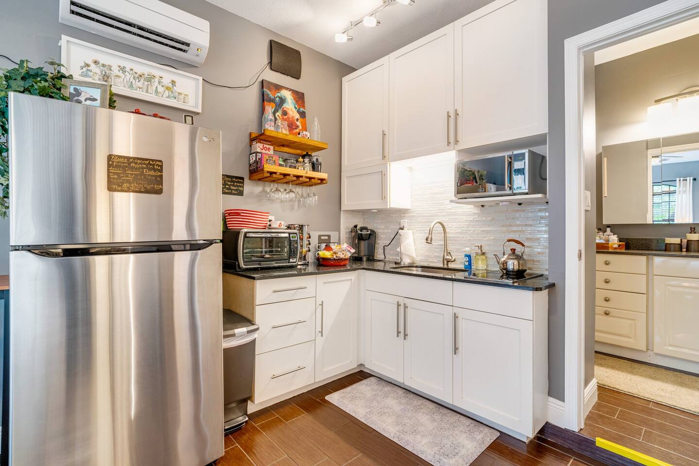 Your private, pet-friendly Backyard Oasis Studio is a waterfront retreat perfect for couples or solo travelers, nestled on the edge of a serene pond. The studio is attached to the main home's garage but has its own private entrance, ensuring a peaceful and completely separate space. Private Studio Retreat: - Living & Sleeping: Features a comfortable Queen-size Murphy bed, a TV, and room-darkening shades. The space is kept comfortable with a split type ductless A/C and heating system, plus a ceiling fan. - Kitchenette: A well-equipped space with a full-size refrigerator, stove, toaster oven, microwave, and both Keurig and drip coffee makers. Welcome snacks are provided. - Dedicated Workspace: Includes a full desk with office supplies and property-wide Wi-Fi. - Bathroom: A clean, modern full bathroom with a shower/tub combination, essential hygiene products, and fresh towels. Shared Backyard Oasis: Step outside to enjoy incredible shared amenities: - Pool & Hot Tub: A sparkling, freeform swimming pool and a bubbling hot tub. - Lounge & Dine: A comfortable sectional sofa in the covered gazebo and an outdoor dining area. - Fire Pit & Grill: A stone fire pit for evening relaxation and a propane BBQ for grilling.