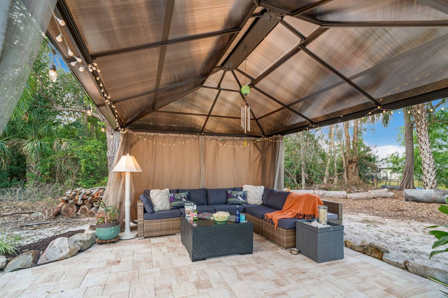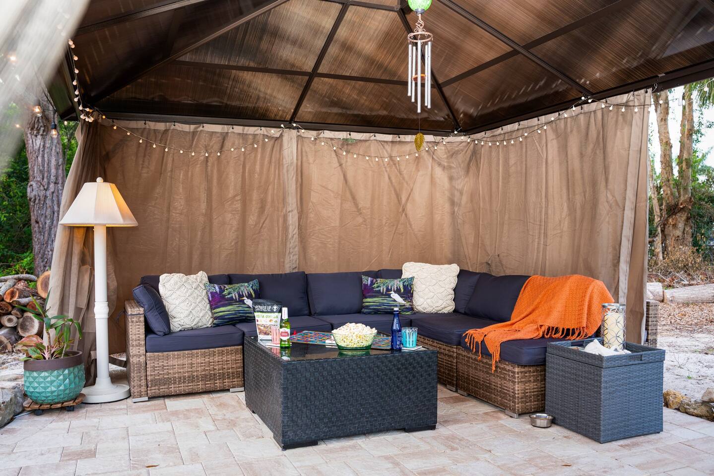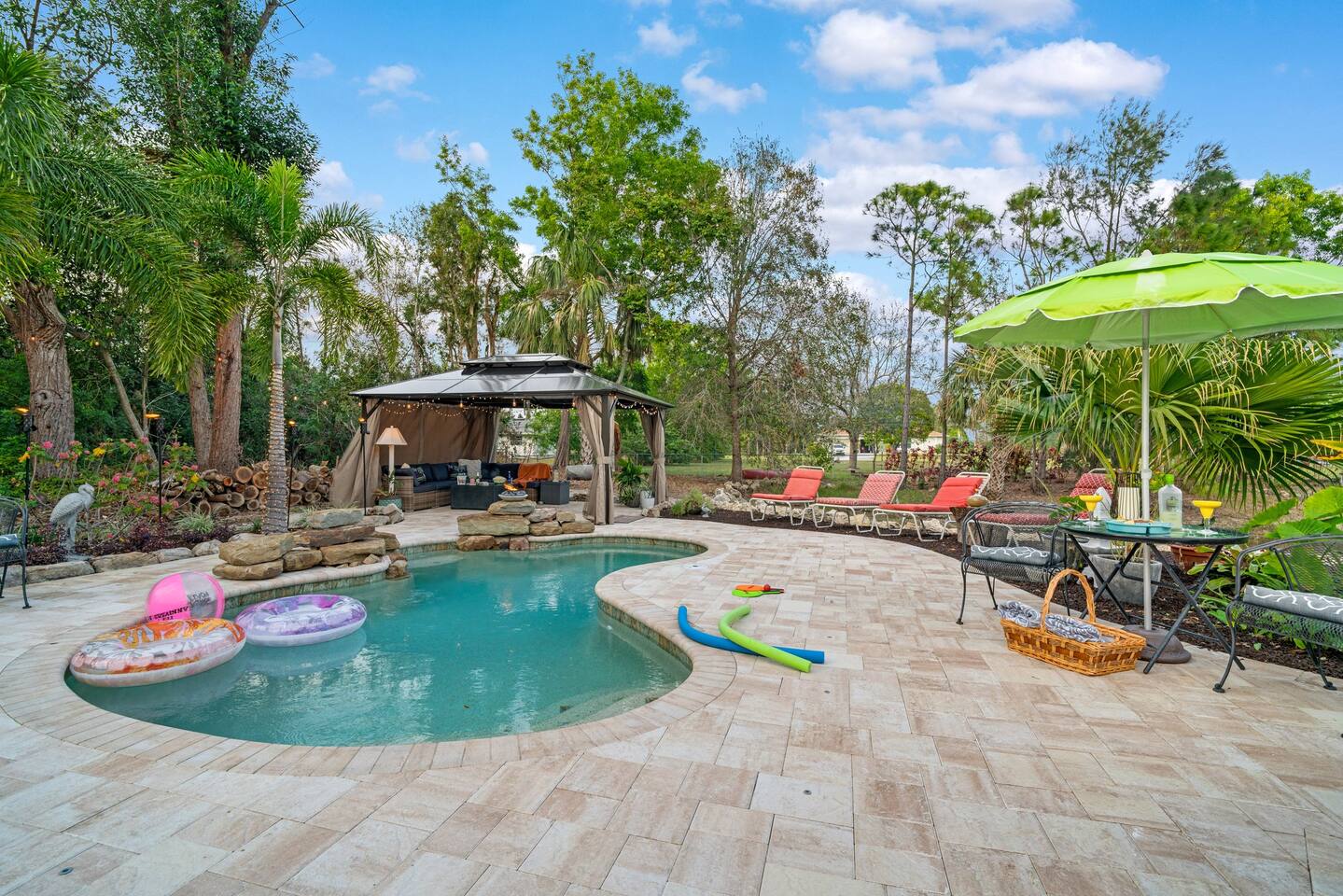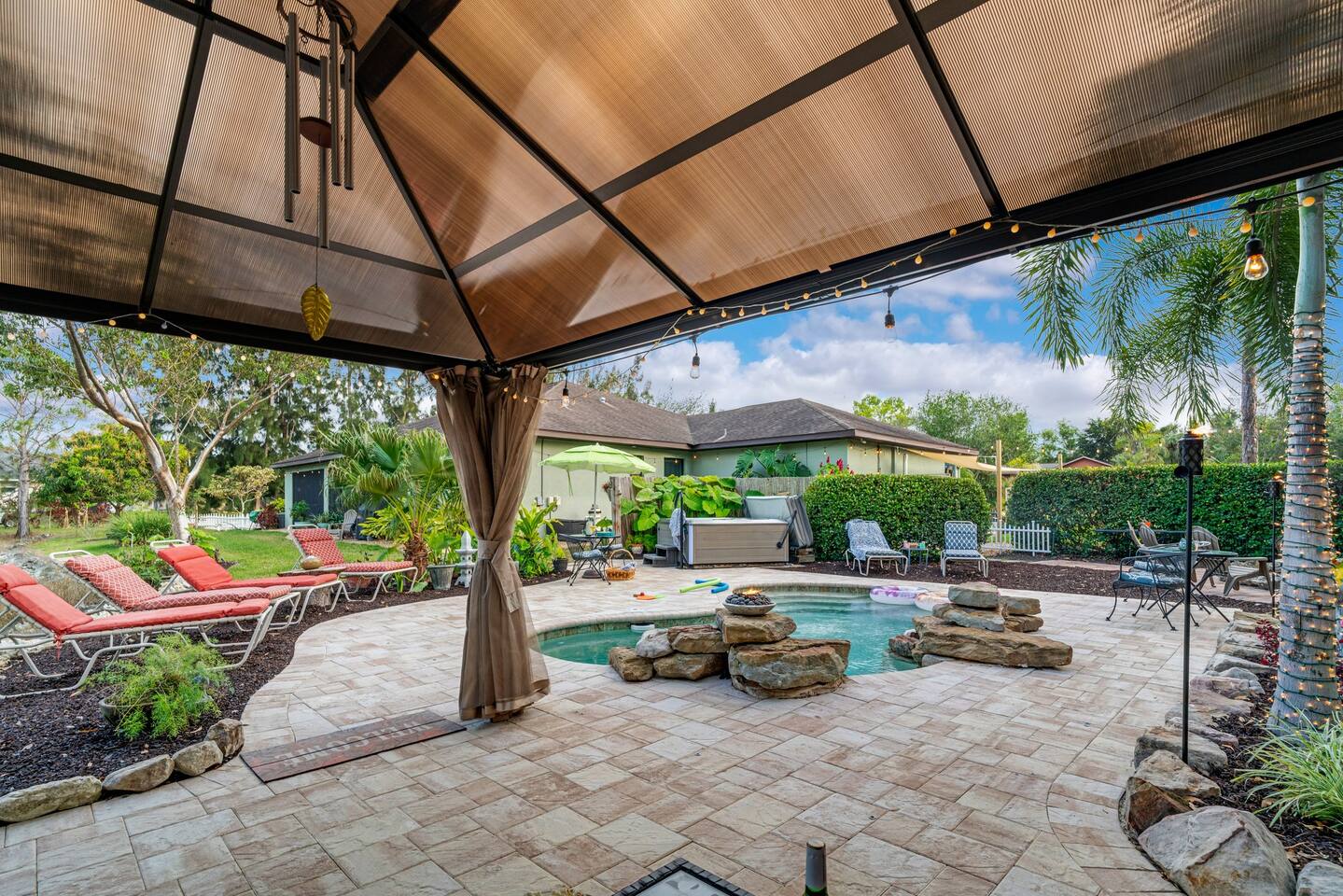 Guests will have full, private access to the entire studio apartment and the small patio attached to its entrance. The backyard amenities, including the pool, hot tub, gazebo, and grill area, are shared spaces with the owners who live in the main house.