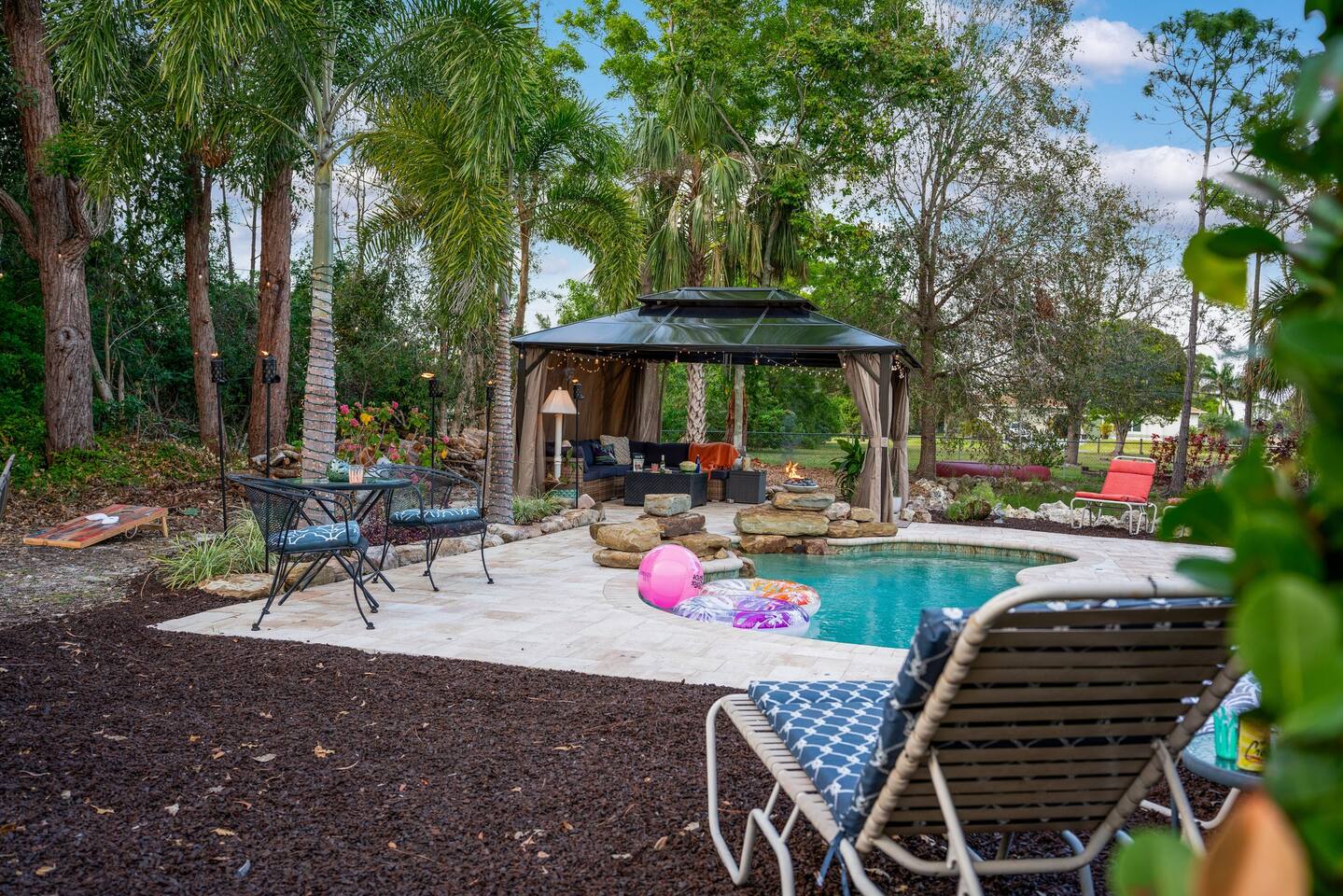 Escape to a private, pet-friendly waterfront studio in Bonita Springs, perfect for 2. This oasis features a private entrance and access to a stunning shared backyard with a pool, hot tub, and fire pit. Enjoy serene pond views and vibrant sunsets. Your ideal retreat for relaxation and exploring the Florida coast.