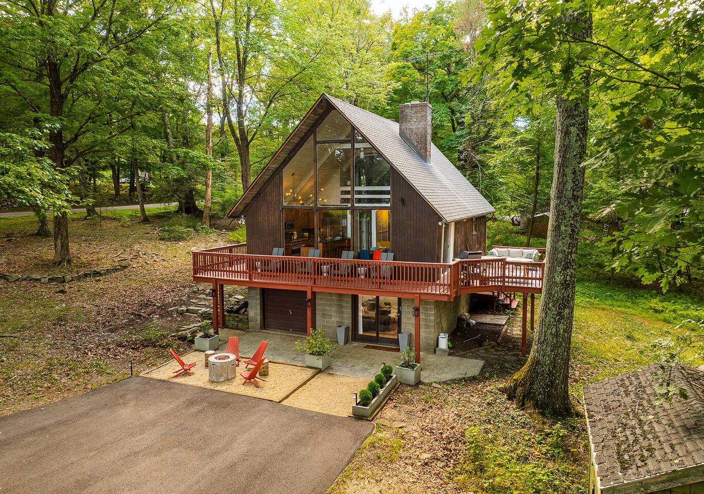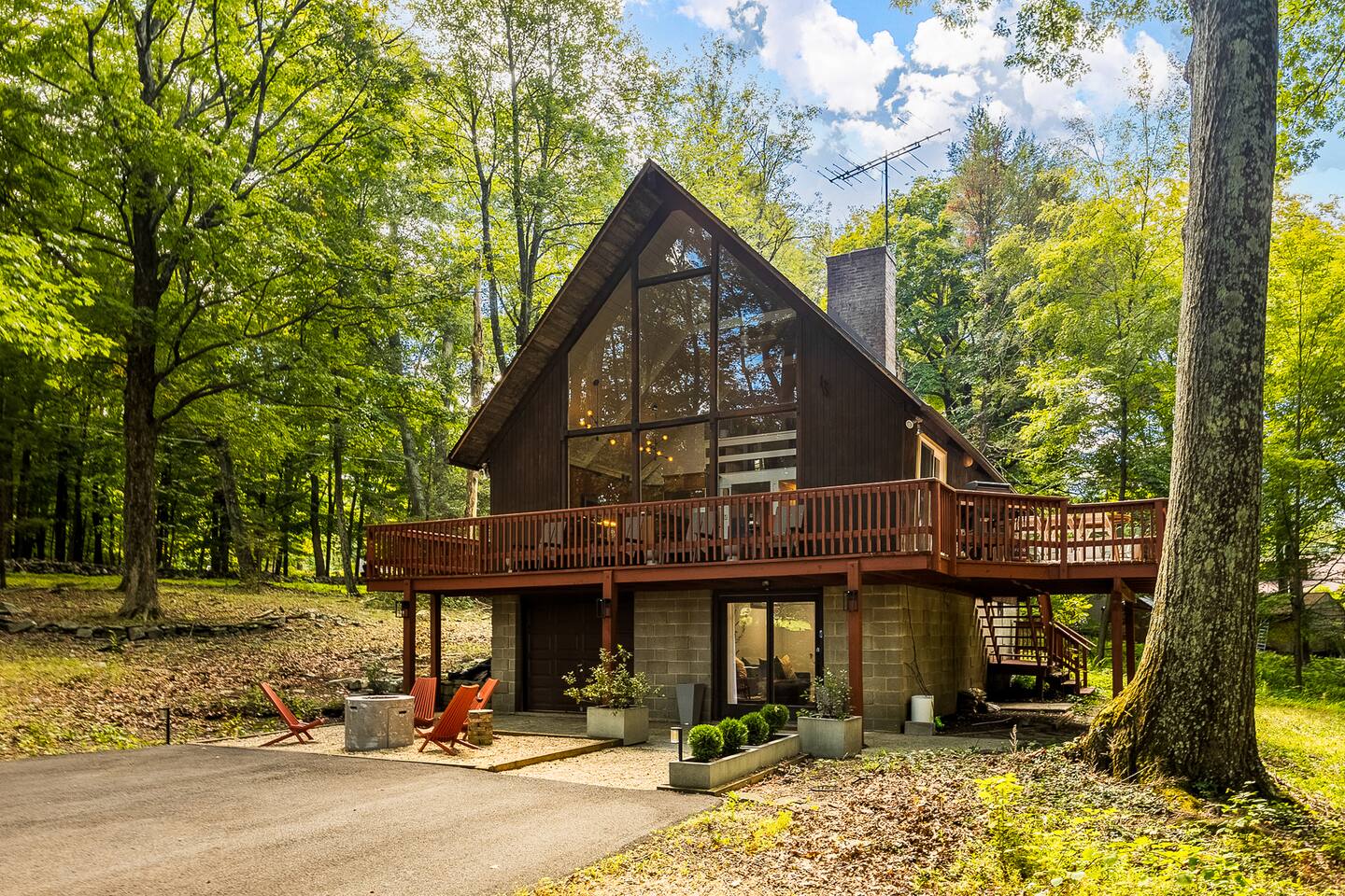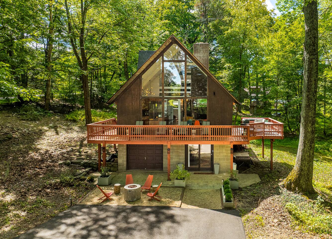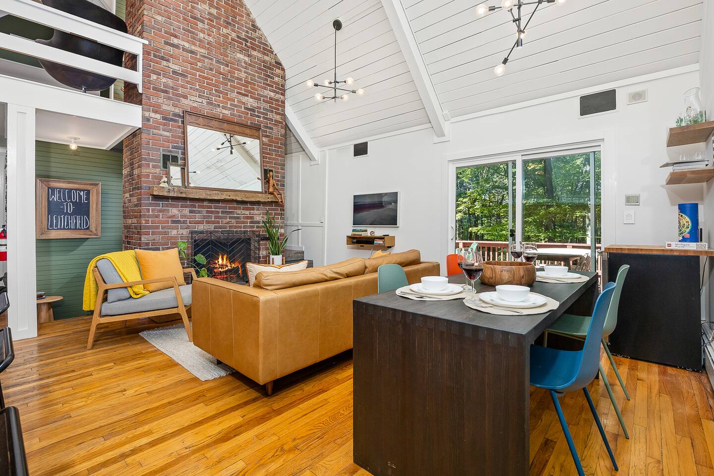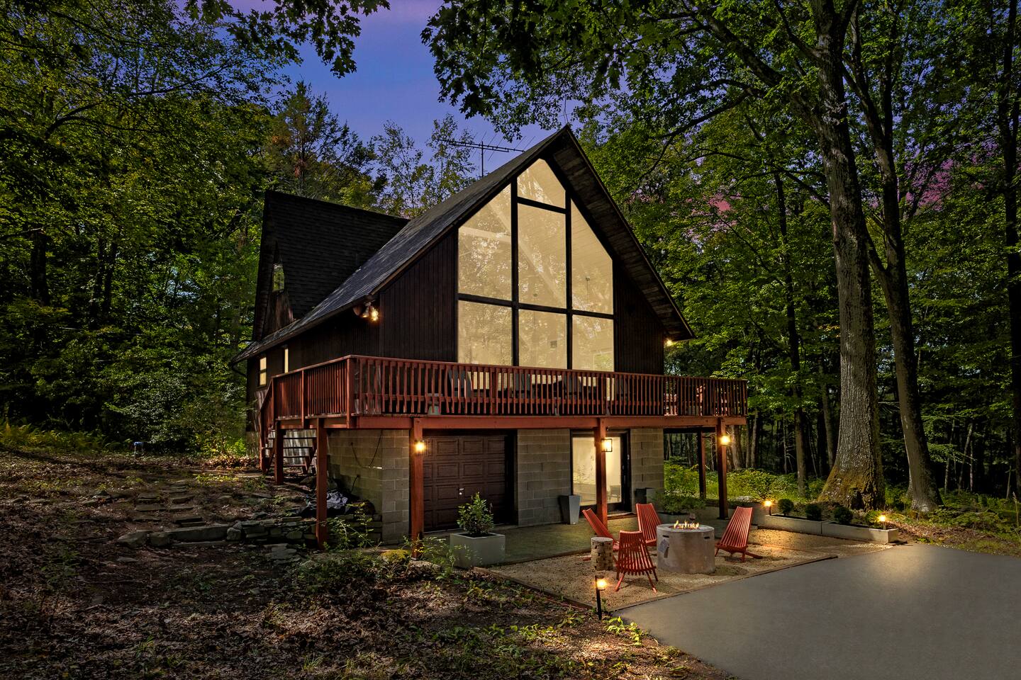 Escape to Leitchfield, your cozy cabin retreat nestled in the woods of Middletown, NY. This modern A-frame cabin blends rustic charm with contemporary comforts, creating the perfect setting for relaxation and reconnection. High vaulted ceilings, a ceiling fan, and large windows fill the open-concept living space with beautiful natural light, inviting you to unwind from the moment you arrive. Bed & Bath - Bedroom 1: A serene primary suite with a King bed, and clothing storage. - Bedroom 2: A comfortable room with a Queen bed and cozy lighting. - Bedroom 3: A quiet space with a Queen bed and closet, perfect for reading or remote work. - Amenities: Enjoy premium linens from Parachute & Brooklinen, shower amenities from Public Goods, and a hairdryer. Kitchen & Dining - A fully equipped kitchen featuring a Sub-Zero fridge, stove, oven, microwave, and a brand new Air Fryer. - Coffee Station: Drip and Keurig coffee makers are available. - Essentials: The kitchen is stocked with cookware, wine glasses, and cooking basics like oil and salt. - Dining Area: Gather around the dining table with seating for six. Indoor Comforts - Entertainment: Relax with our Sonos Stereo System and an HD TV with Amazon Prime, Hulu, Apple TV, and Chromecast (personal logins required). - Connectivity: Stay connected with fast WiFi and an Ethernet option. - Unplug: Enjoy our collection of books and board games. - Climate Control: The home is kept comfortable year-round with a modern ductless heating and air conditioning system. Outdoor Oasis - Private Deck: Unwind on the spacious deck with seating nestled among the trees. - Firepit: Gather around the firepit in Adirondack chairs for an evening of conversation and stargazing. - Grill & Dine: Fire up the BBQ grill for a summer cookout and dine al fresco at the outdoor table for six, illuminated by ambient evening lights.
