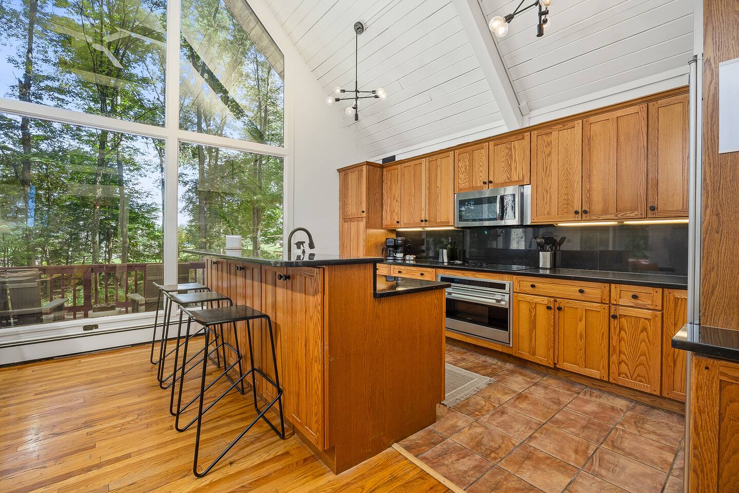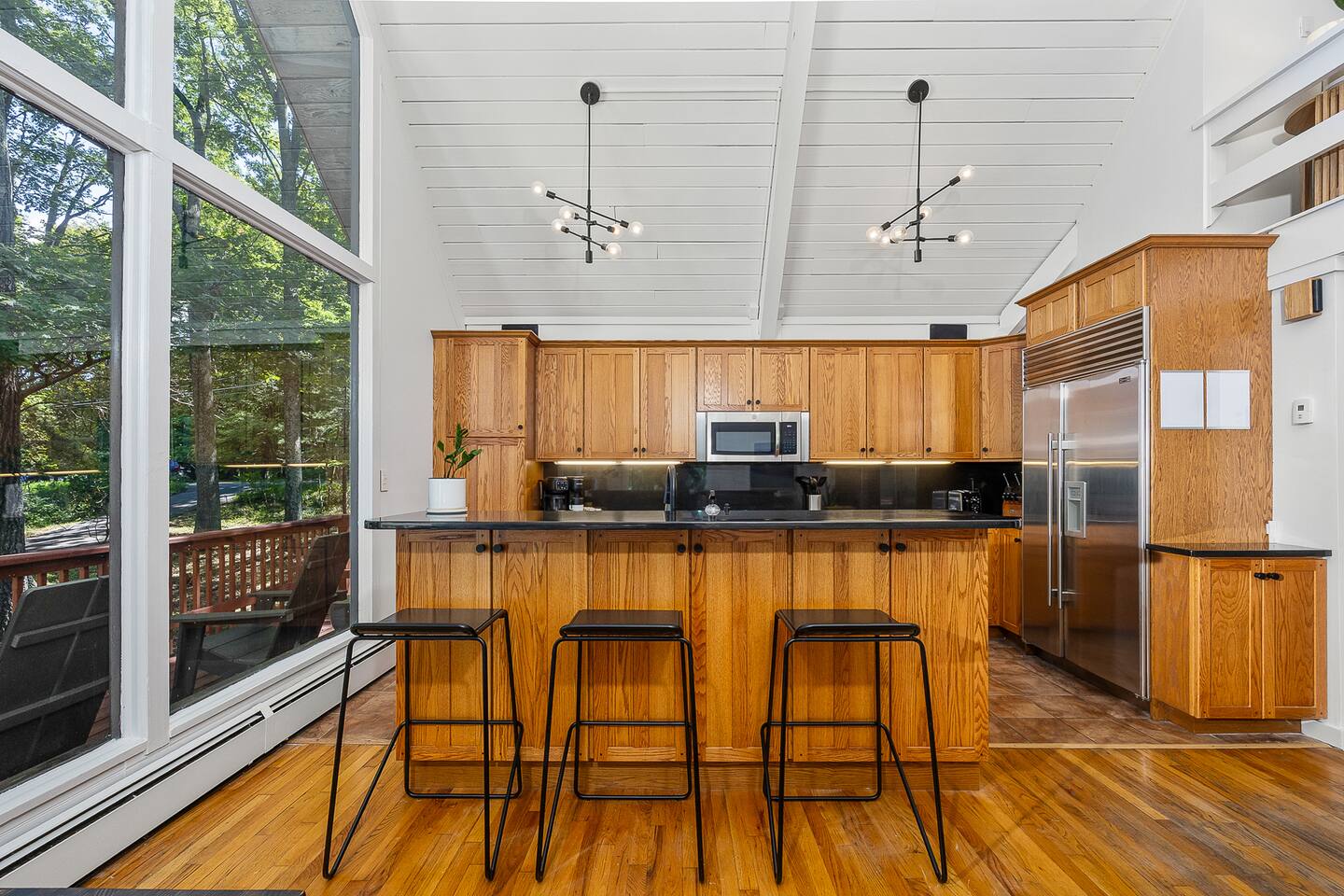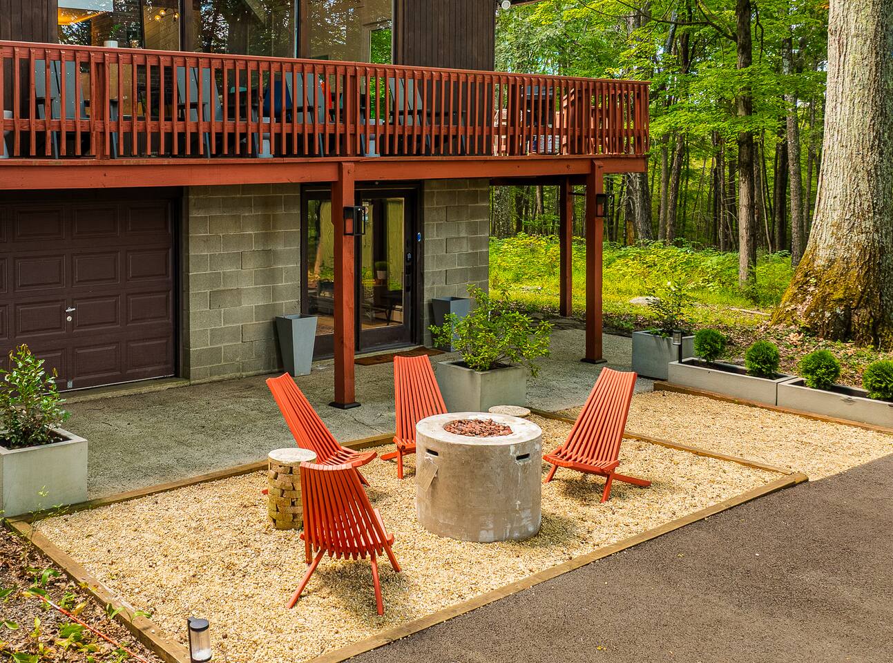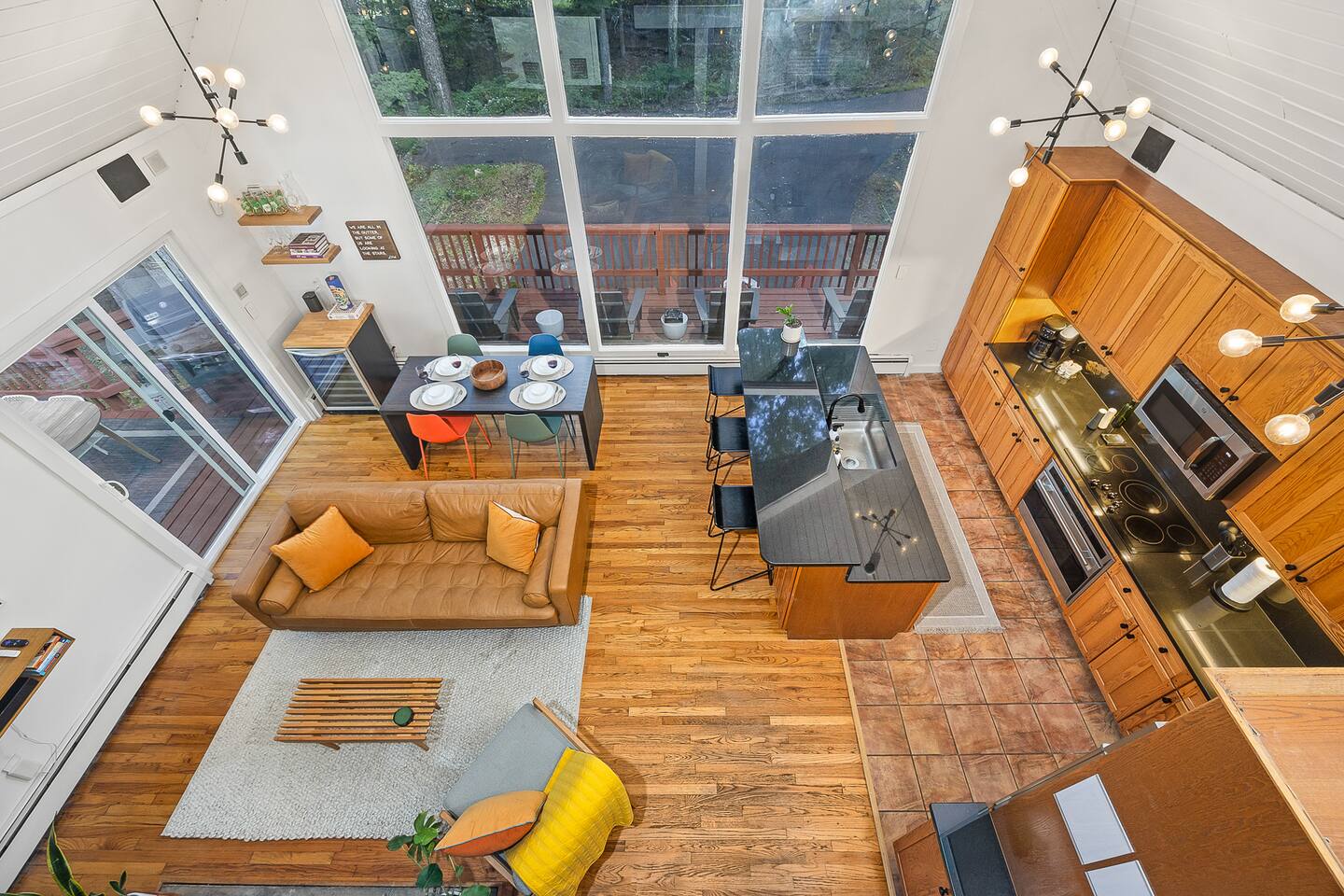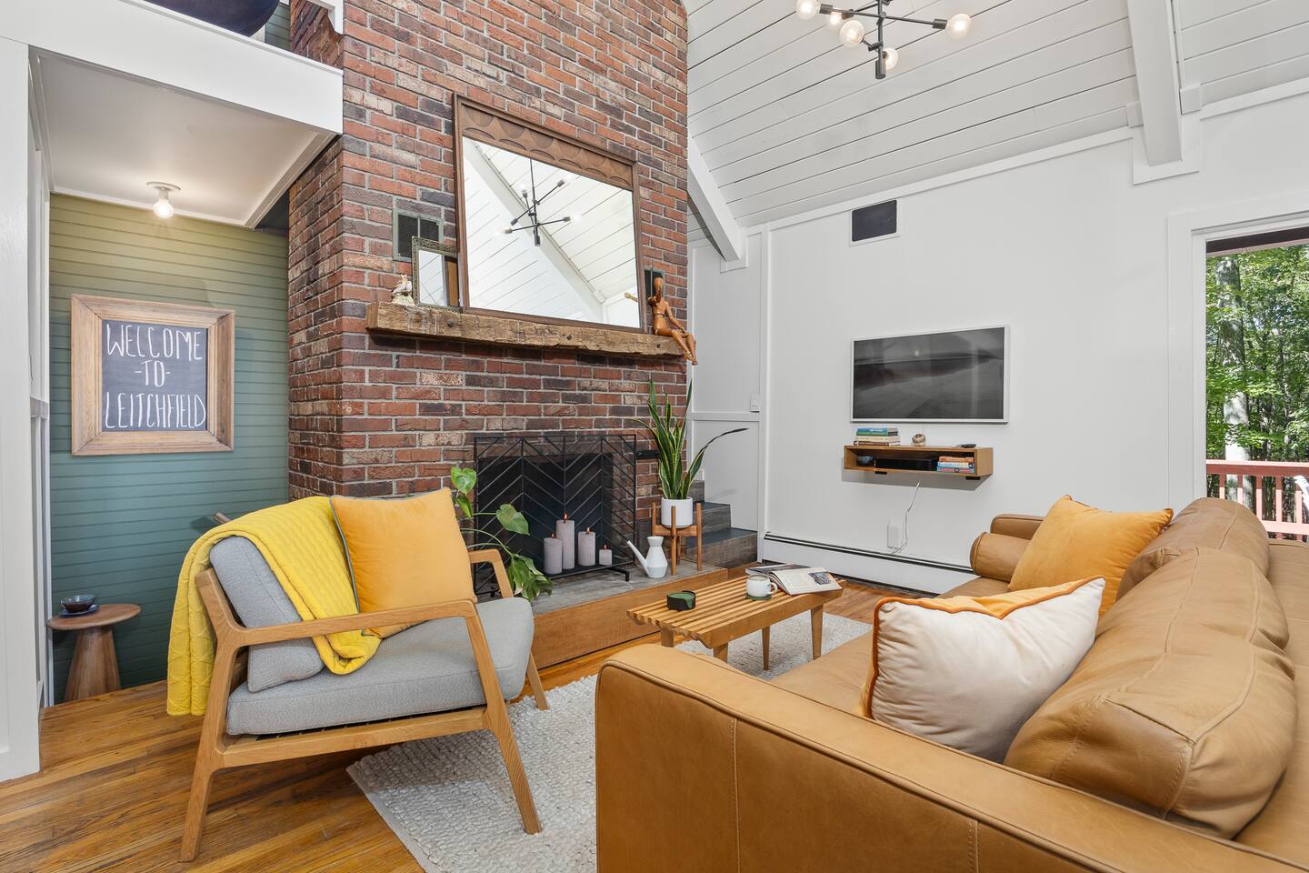 Escape to Leitchfield, your cozy cabin retreat nestled in the woods of Middletown, NY. This modern A-frame cabin blends rustic charm with contemporary comforts, creating the perfect setting for relaxation and reconnection. High vaulted ceilings, a ceiling fan, and large windows fill the open-concept living space with beautiful natural light, inviting you to unwind from the moment you arrive. Bed & Bath - Bedroom 1: A serene primary suite with a King bed, and clothing storage. - Bedroom 2: A comfortable room with a Queen bed and cozy lighting. - Bedroom 3: A quiet space with a Queen bed and closet, perfect for reading or remote work. - Amenities: Enjoy premium linens from Parachute & Brooklinen, shower amenities from Public Goods, and a hairdryer. Kitchen & Dining - A fully equipped kitchen featuring a Sub-Zero fridge, stove, oven, microwave, and a brand new Air Fryer. - Coffee Station: Drip and Keurig coffee makers are available. - Essentials: The kitchen is stocked with cookware, wine glasses, and cooking basics like oil and salt. - Dining Area: Gather around the dining table with seating for six. Indoor Comforts - Entertainment: Relax with our Sonos Stereo System and an HD TV with Amazon Prime, Hulu, Apple TV, and Chromecast (personal logins required). - Connectivity: Stay connected with fast WiFi and an Ethernet option. - Unplug: Enjoy our collection of books and board games. - Climate Control: The home is kept comfortable year-round with a modern ductless heating and air conditioning system. Outdoor Oasis - Private Deck: Unwind on the spacious deck with seating nestled among the trees. - Firepit: Gather around the firepit in Adirondack chairs for an evening of conversation and stargazing. - Grill & Dine: Fire up the BBQ grill for a summer cookout and dine al fresco at the outdoor table for six, illuminated by ambient evening lights.