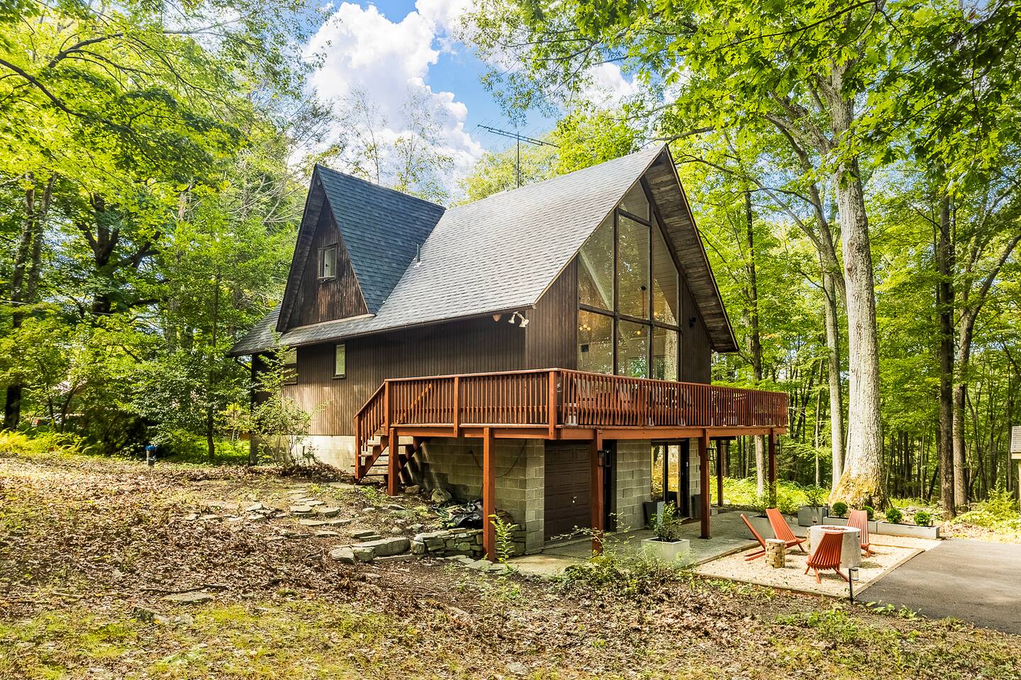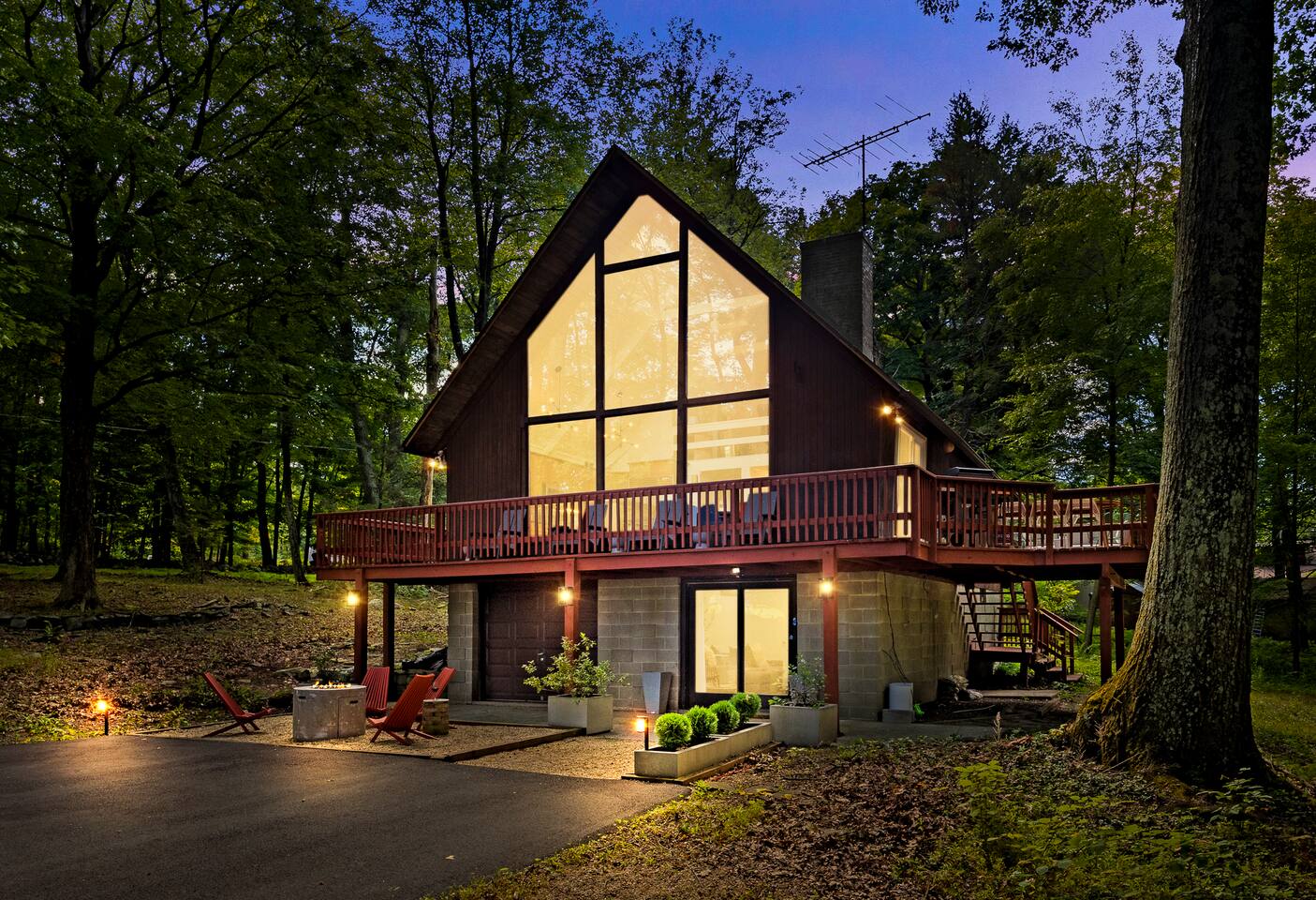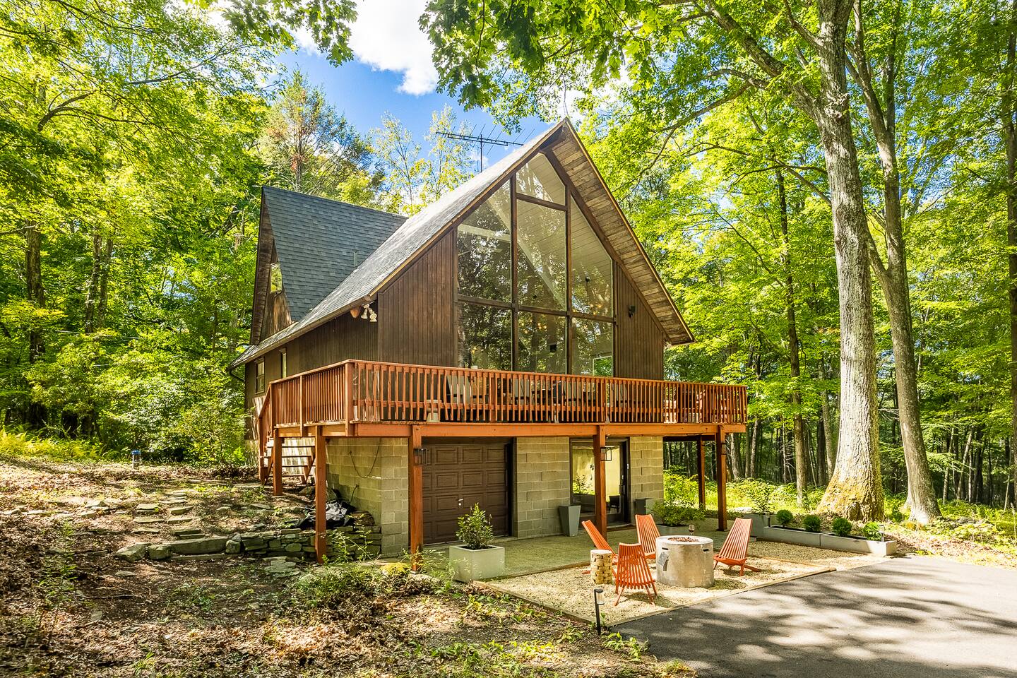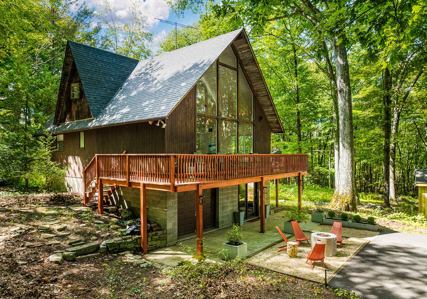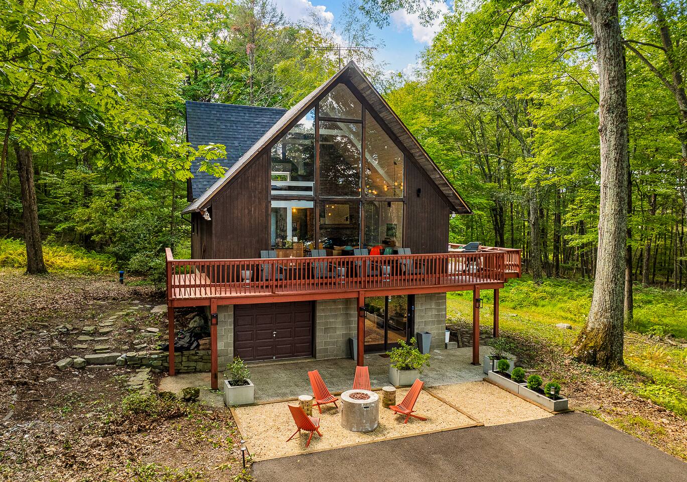 Escape to Leitchfield, a modern A-frame cabin in the woods of Middletown, NY. This cozy 3-bedroom, 2-bath retreat comfortably sleeps 6. Perfect for families or couples, it features a fully equipped kitchen, a spacious deck, and a firepit for stargazing. Unwind in rustic charm with contemporary comforts for a memorable getaway.