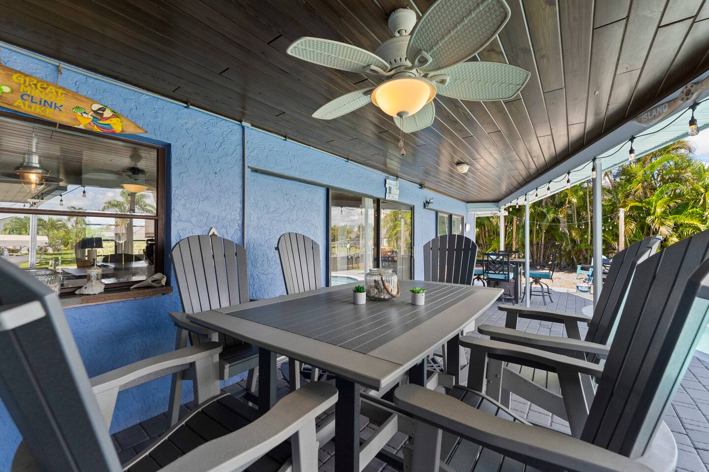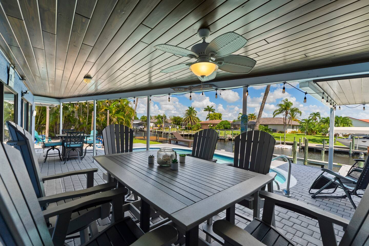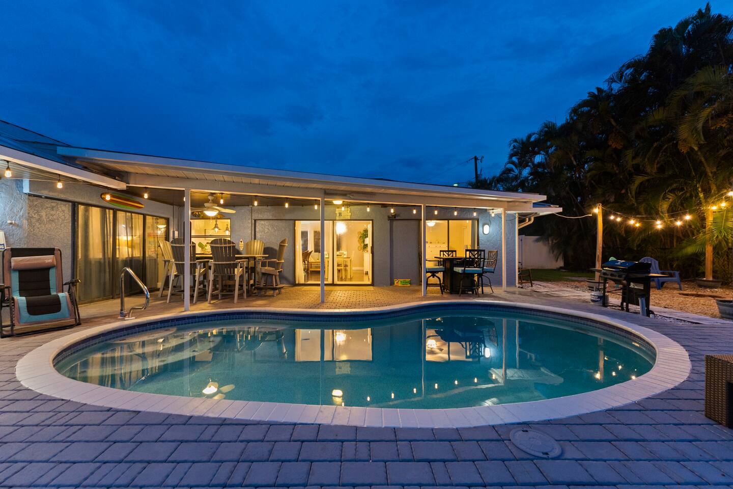 Escape to your own private sanctuary in quiet South Cape Coral. This modern 3-bedroom, 2-bath single-level home is designed for comfort and connection, offering direct Gulf access and everything you need for a perfect getaway. The open-concept living area features a cozy sofa, a Smart TV for movie nights, and a dining table for six. For a relaxed family evening, we've provided a selection of books, toys, and board games. Kitchen & Dining The fully equipped kitchen makes mealtime a breeze, featuring: - Stainless steel appliances - Keurig coffee station - Breakfast bar for casual mornings Bedrooms & Bathrooms Each bedroom offers fresh linens and a warm, inviting atmosphere. The two full bathrooms are stocked with body wash, shampoo, and conditioner. - Bedroom 1: A peaceful retreat with a King bed, Smart TV, and a spacious closet. - Bedroom 2: A bright and cheerful space featuring a cozy Queen bed. - Bedroom 3: Perfect for kids or travel companions with a double bed and a single bed. - A Pack ’n Play/Travel crib is also available for our youngest guests. Outdoor Oasis Your private paradise awaits outside! - Lounge by the heated swimming pool. - Private dock for a peaceful canal adventure. - Enjoy sunset dinners on the string-lit patio with a BBQ grill and outdoor dining area. - Share stories around the fire pit under the starry sky.