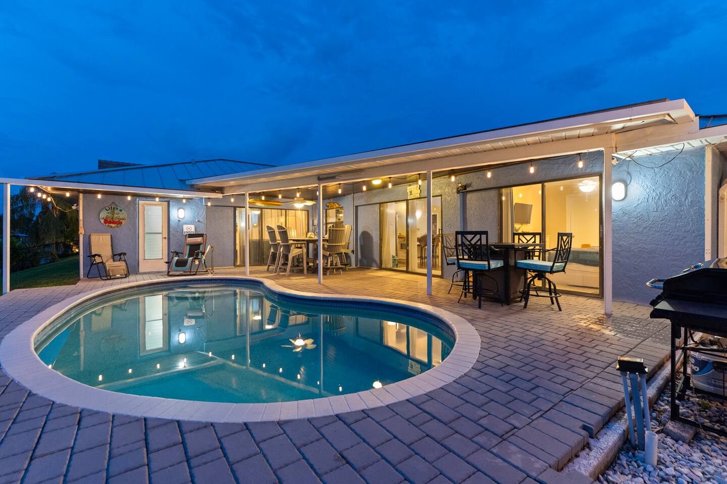 1. Single-Level Home: The entire property is on one level, making it easily accessible for guests with mobility considerations. 2. Pool Heating: The pool can be heated for an optional nightly fee. Please inquire before your arrival if you would like to add this service to your stay. 3. Florida Wildlife: This is Florida, and it is common to see local wildlife. While the house is professionally treated for pests, you may occasionally see spiders, ants, or other critters who find their way inside. 4. Security: For your safety and security, the property is monitored by exterior security cameras. These are located at the front entrance and overlooking the canal/dock area. There are no cameras inside the home or in private outdoor areas like the pool/patio.