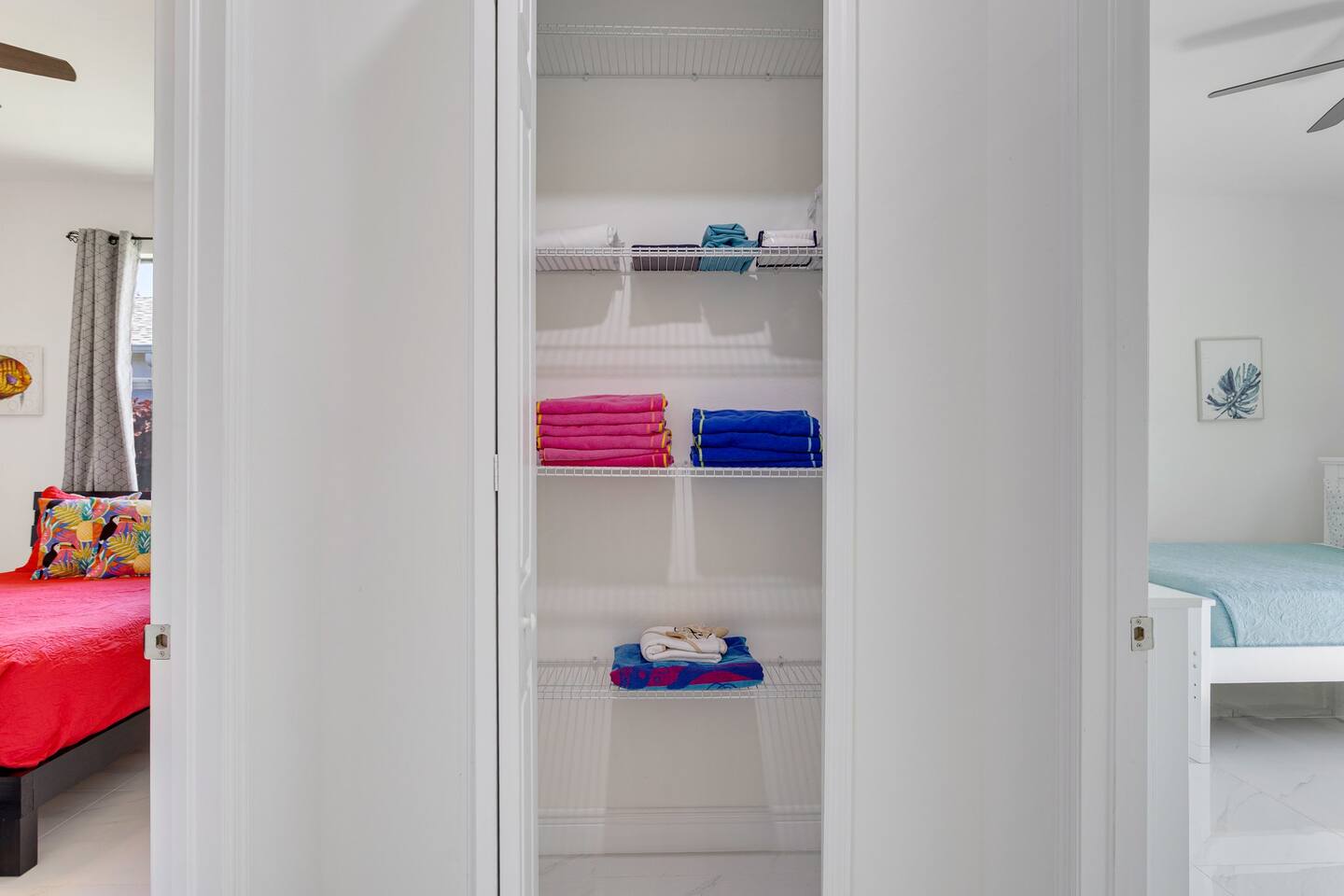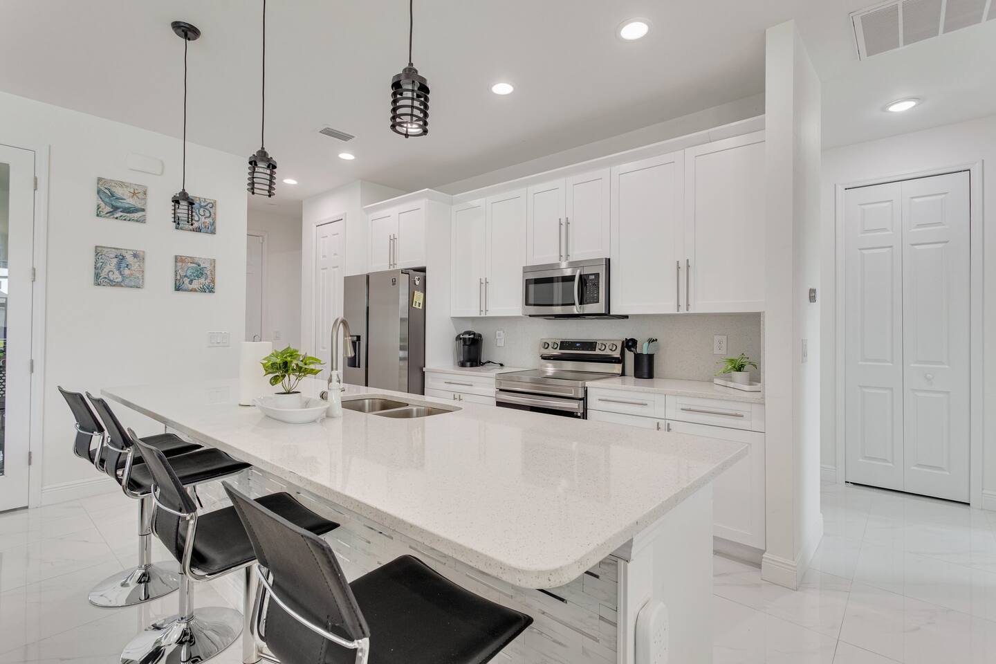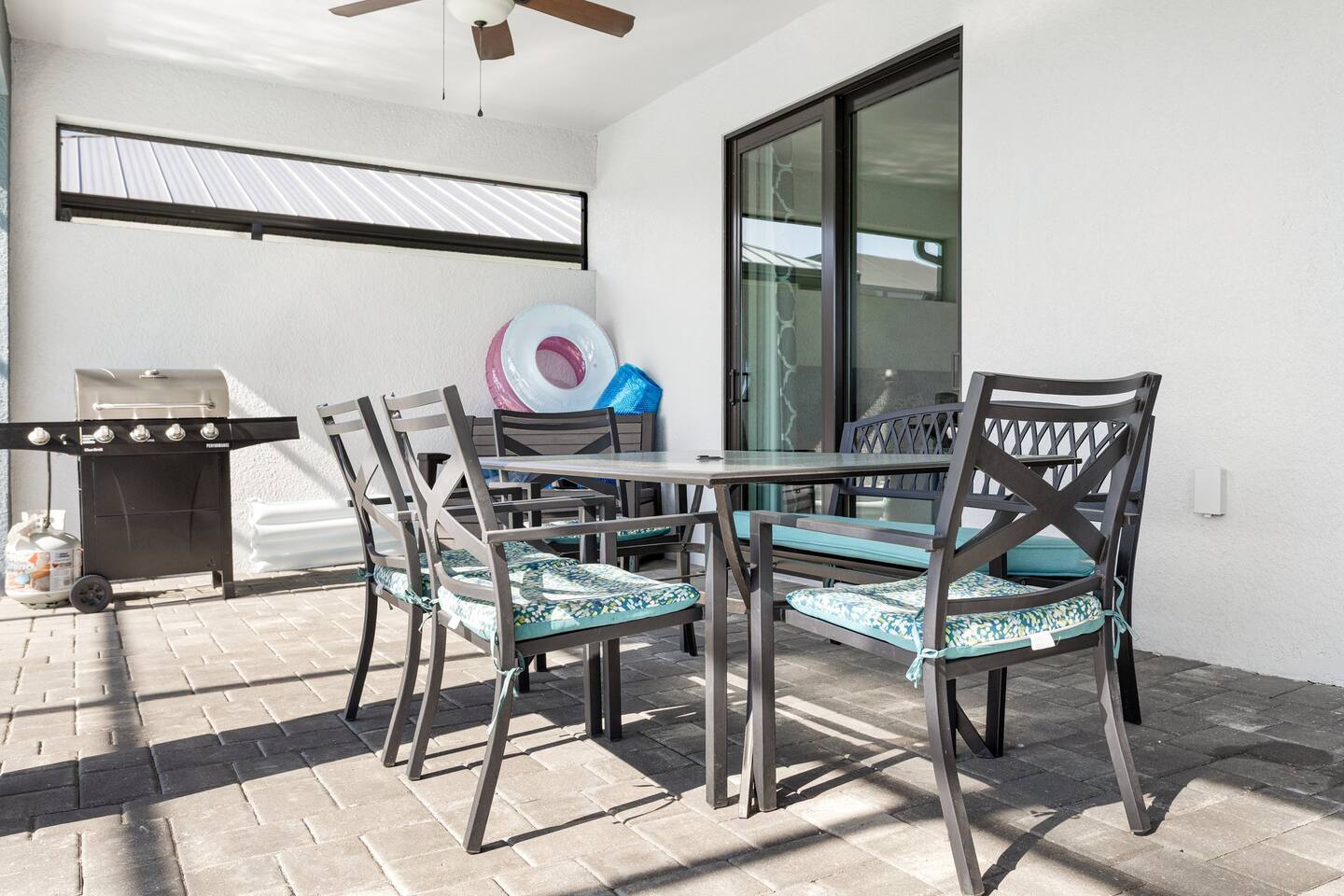 SLEEPING ARRANGMENTS - Bedroom Suite: 1 king bed - Bedroom 2: 1 queen bed - Bedroom 3: 2 full beds - Additional Sleeping: 1 pack ‘n play OUTDOOR LIVING - Lanai, outdoor pool w/ childproofed fence (depth 3’-5’) - Covered patio, outdoor dining area, gas grill - Lounge seating, canal views INDOOR LIVING - 4 flat-screen TVs w/ cable, 2 laptop desks - Exercise bike - Ceiling fans, walk-in closet, 1,900 sq ft - Board games KITCHEN - Stove/oven, refrigerator, microwave, dishwasher - Dishware/flatware, cooking basics, stainless steel appliances - Keurig coffee maker, blender, rice cooker - High chair GENERAL - Free WiFi - Central air conditioning/heat - Towels/linens, complimentary toiletries, hair dryers - Washer/dryer, laundry detergent - Trash bags/paper towels - ADT monitored, keyless entry FAQ - Quiet hours (11:00 PM-7:00 AM) - 6 exterior security cameras (facing out) - Optional nightly pool heat fee (paid pre-trip, applied to entire stay) PARKING - Garage (2 vehicles), driveway (2 vehicles) House rules No smoking No pets allowed No events, parties, or large gatherings Must be at least 25 years old to book Additional fees and taxes may apply Photo ID may be required upon check-in ADDITIONAL INFORMATION Please observe quiet hours from 11:00 PM to 7:00 AM There is an optional pool heat fee of $10/night (+ fees & taxes, paid pre-trip, applied to entire stay) Your safety matters. This property features 6 exterior security cameras: 1 camera is located on the lanai facing the yard, 1 camera is located above the garage door facing the canal, 1 camera is located on the side of the home facing the garage doors/driveway, 1 camera is located above the front door facing the front entrance, 1 camera is located on the corner of the home facing the front yard/corner of home, and 1 camera is located on the west side of the home facing the alley/side of the home. The cameras are outward facing and do not look into interior spaces. The cameras are activated by motion and will actively record video and sound while guests are in residence The location 4 miles to Sun Splash Family Waterpark 5 miles to Gator Mike's Family Fun Park 6 miles to Coral Oaks Golf Course 7 miles to Rotary Park 18 miles to Bunche Beach