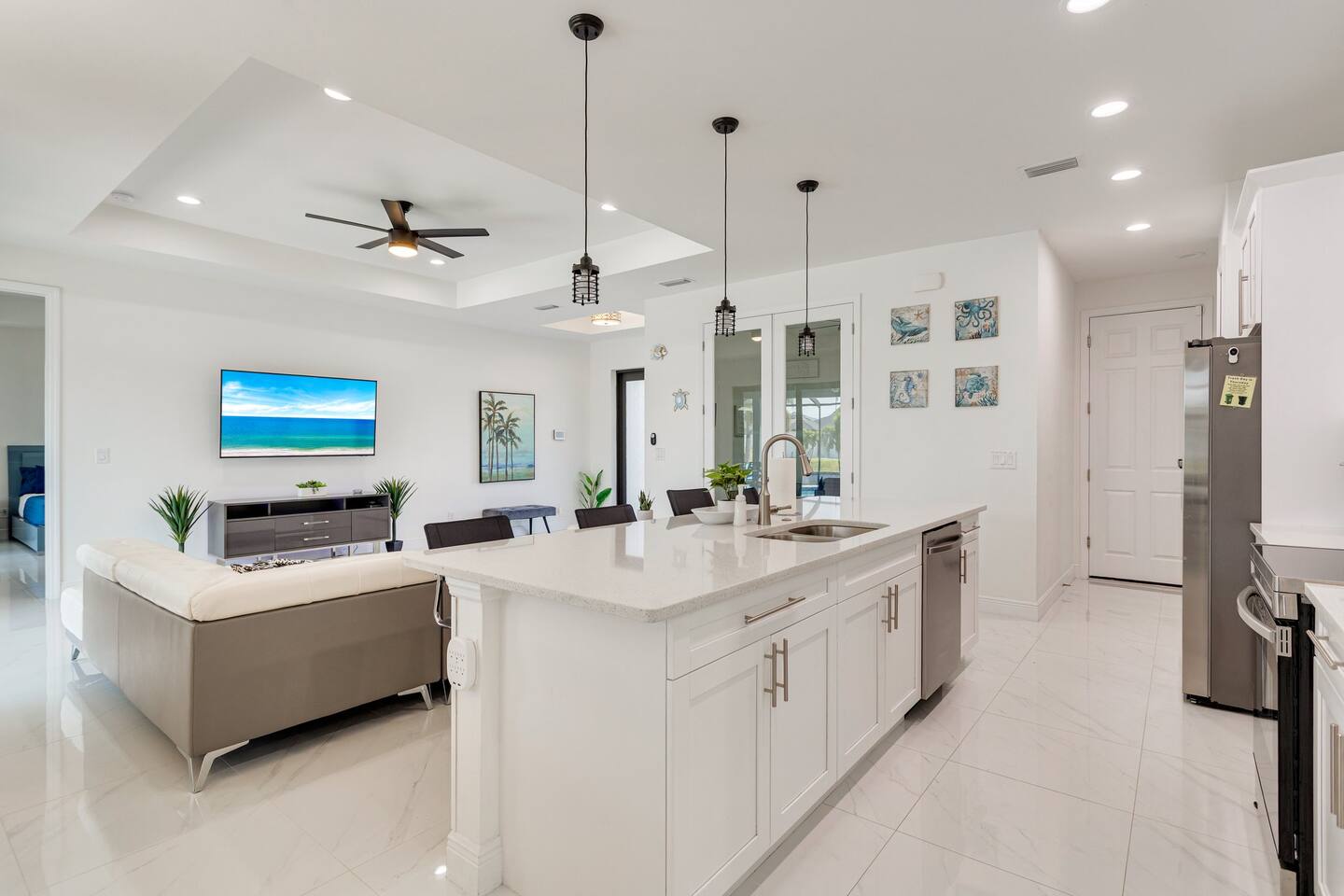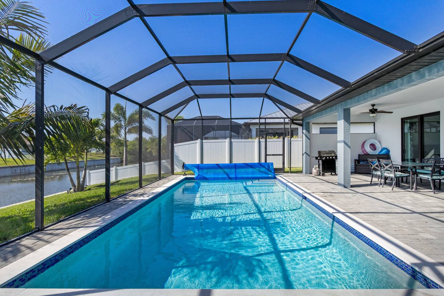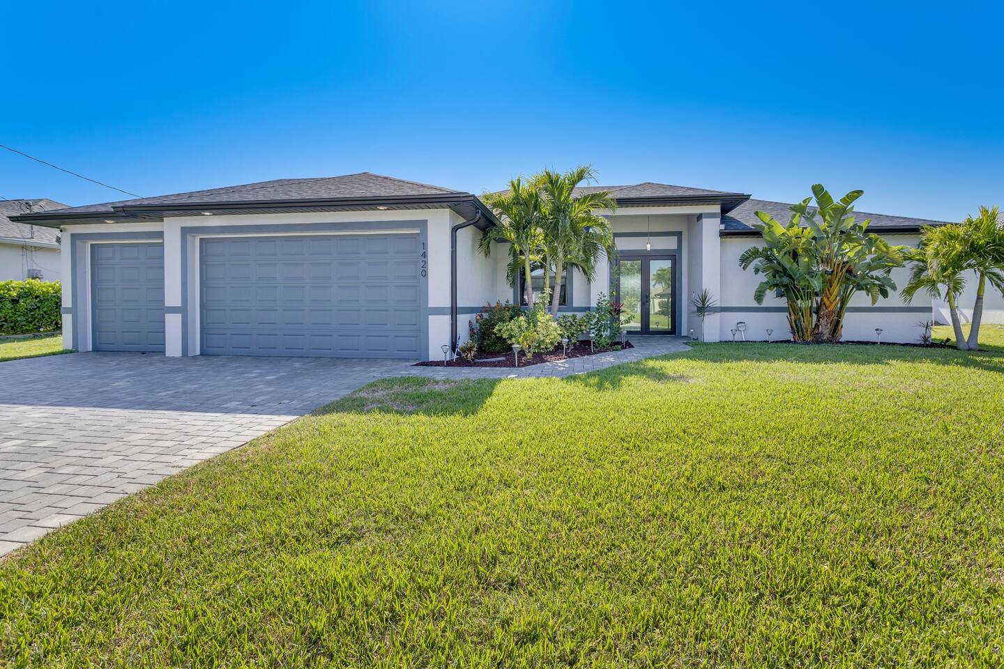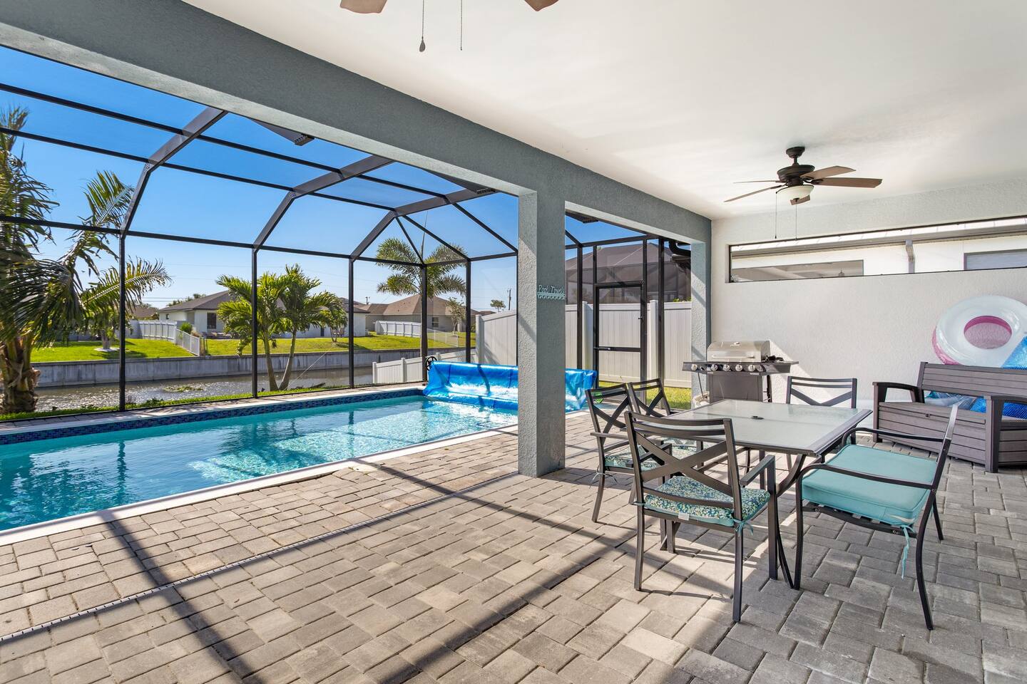 Escape to your own slice of paradise in this spacious and stylish 3-bedroom, 2-bathroom vacation rental in Cape Coral. With modern furnishings, a private office, and a sunny lanai with water views, this home has everything you need for a luxurious stay. Fire up the gas grill and dine outside on the patio or dip in the pool. Later, take a short drive to Sun Splash Family Waterpark or visit Fort Myers Beach and Sanibel Island.