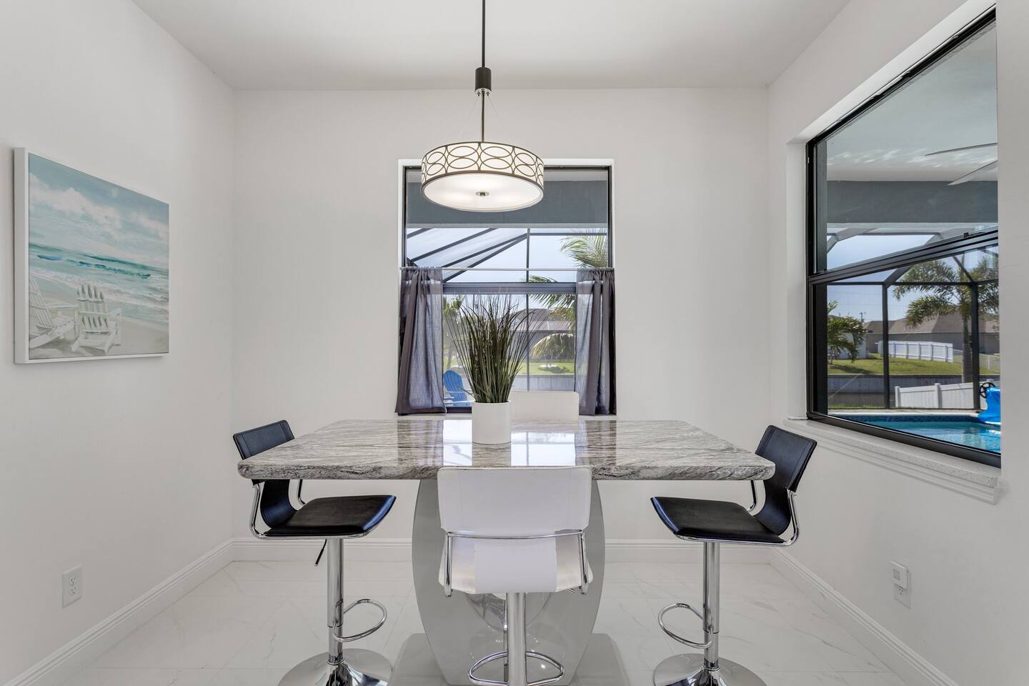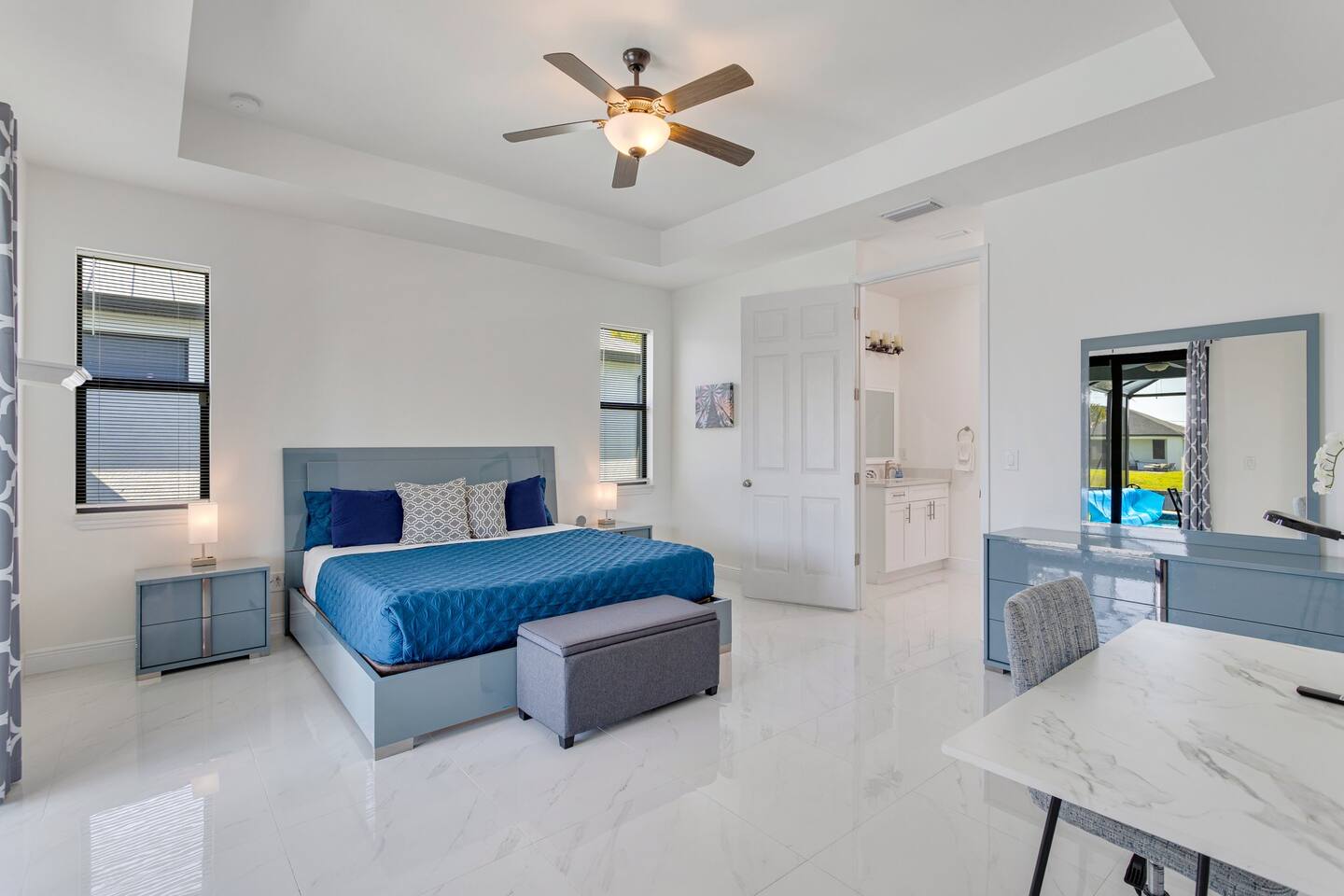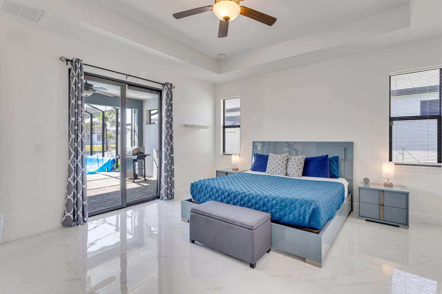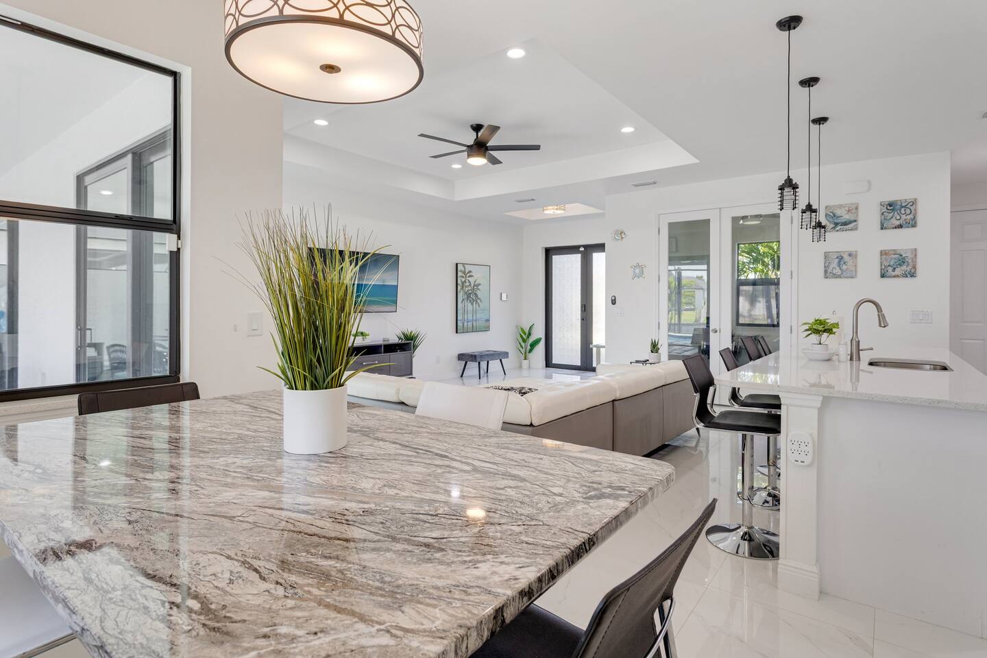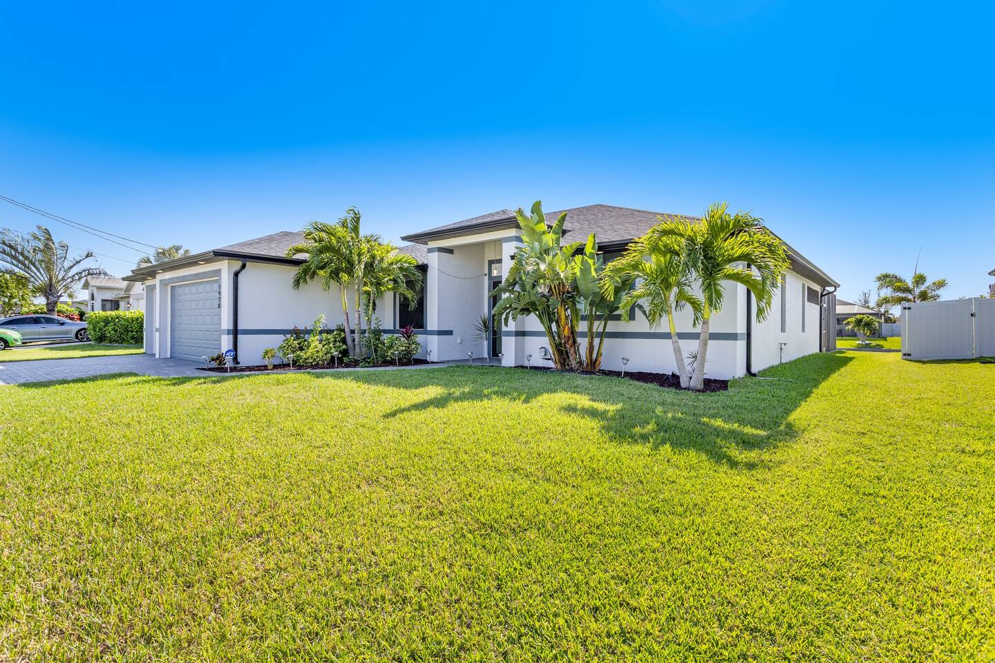 Escape to your own slice of paradise in this spacious and stylish 3-bedroom, 2-bathroom vacation rental in Cape Coral. With modern furnishings, a private office, and a sunny lanai with water views, this home has everything you need for a luxurious stay. Fire up the gas grill and dine outside on the patio or dip in the pool. Later, take a short drive to Sun Splash Family Waterpark or visit Fort Myers Beach and Sanibel Island.