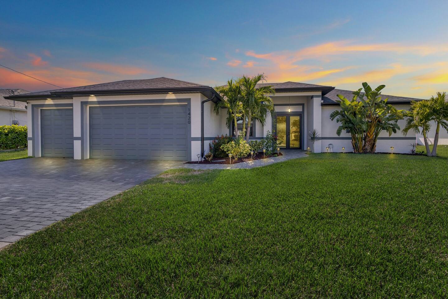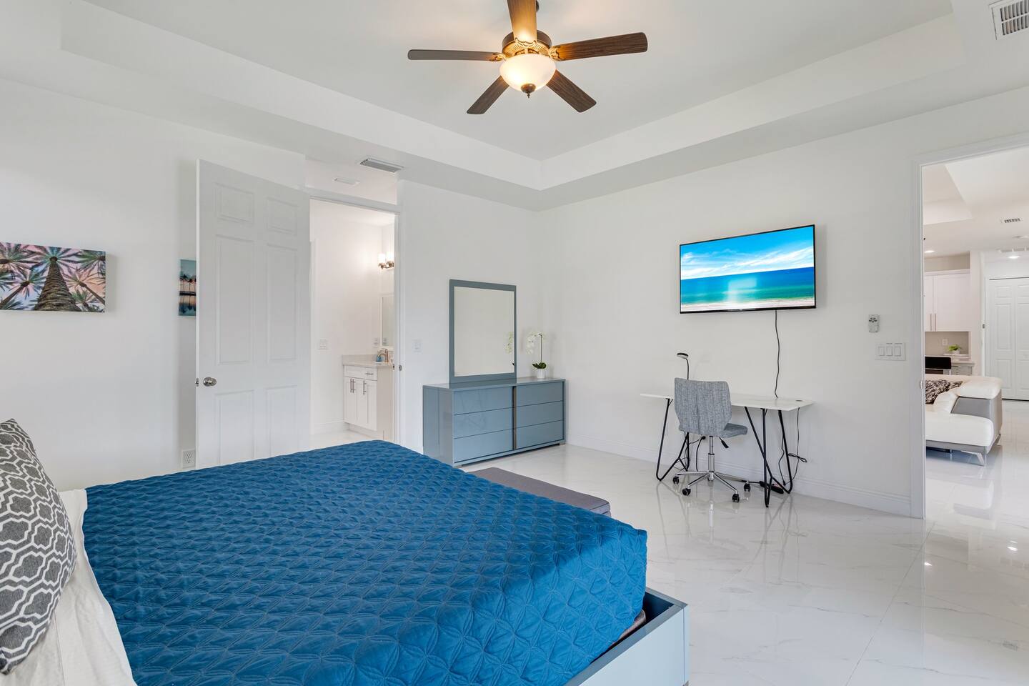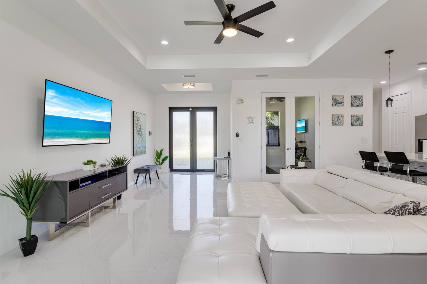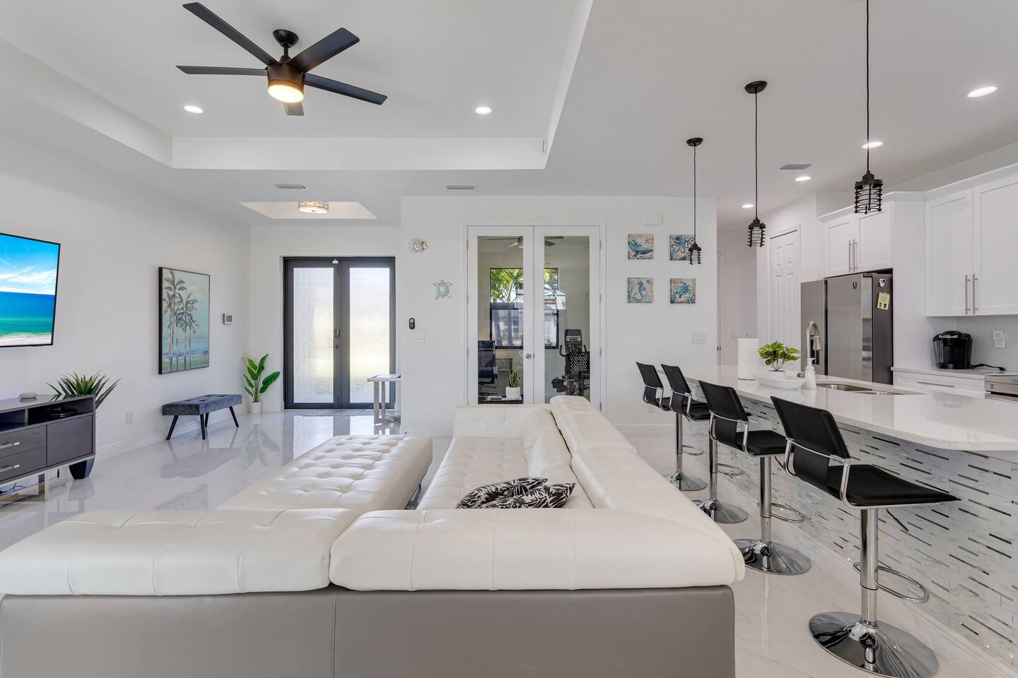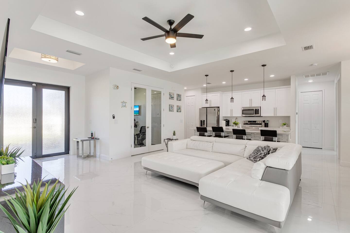 Escape to your own slice of paradise in this spacious and stylish 3-bedroom, 2-bathroom vacation rental in Cape Coral. With modern furnishings, a private office, and a sunny lanai with water views, this home has everything you need for a luxurious stay. Fire up the gas grill and dine outside on the patio or dip in the pool. Later, take a short drive to Sun Splash Family Waterpark or visit Fort Myers Beach and Sanibel Island.